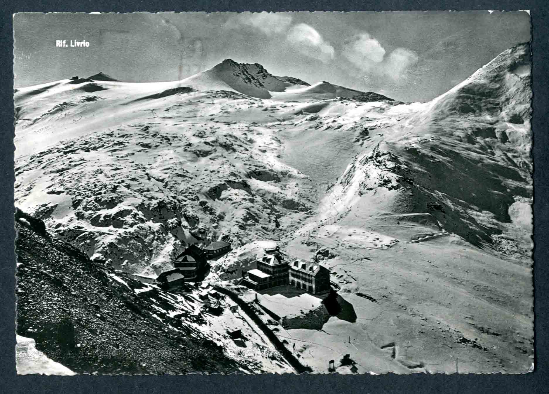 104x150 mm, b/n. Titolo sul verso: Passo dello Stelvio e il rifugio Monte Livrio m. 3200. Data dal timbro postale