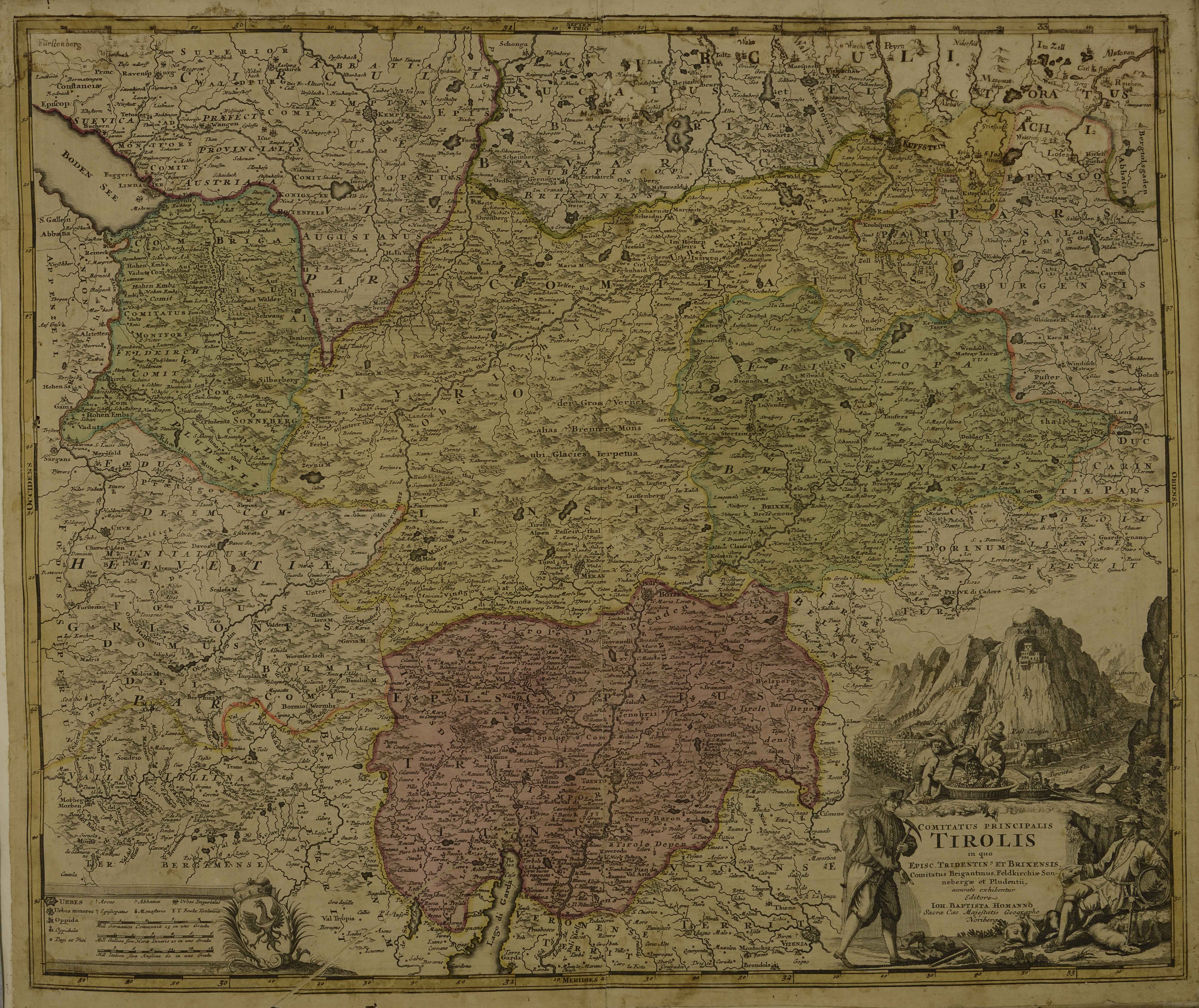 Calcografia; 467x560 mm. Pubblicata in Johann Baptist Homann, Grosser Atlas über die ganze Welt, Nürnberg, Johann Baptist Homann, 1716 (cfr. Gino Tomasi, Il territorio trentino-tirolese nell'antica cartografia, Ivrea, Priuli &, Verlucca, 1997, scheda 54)