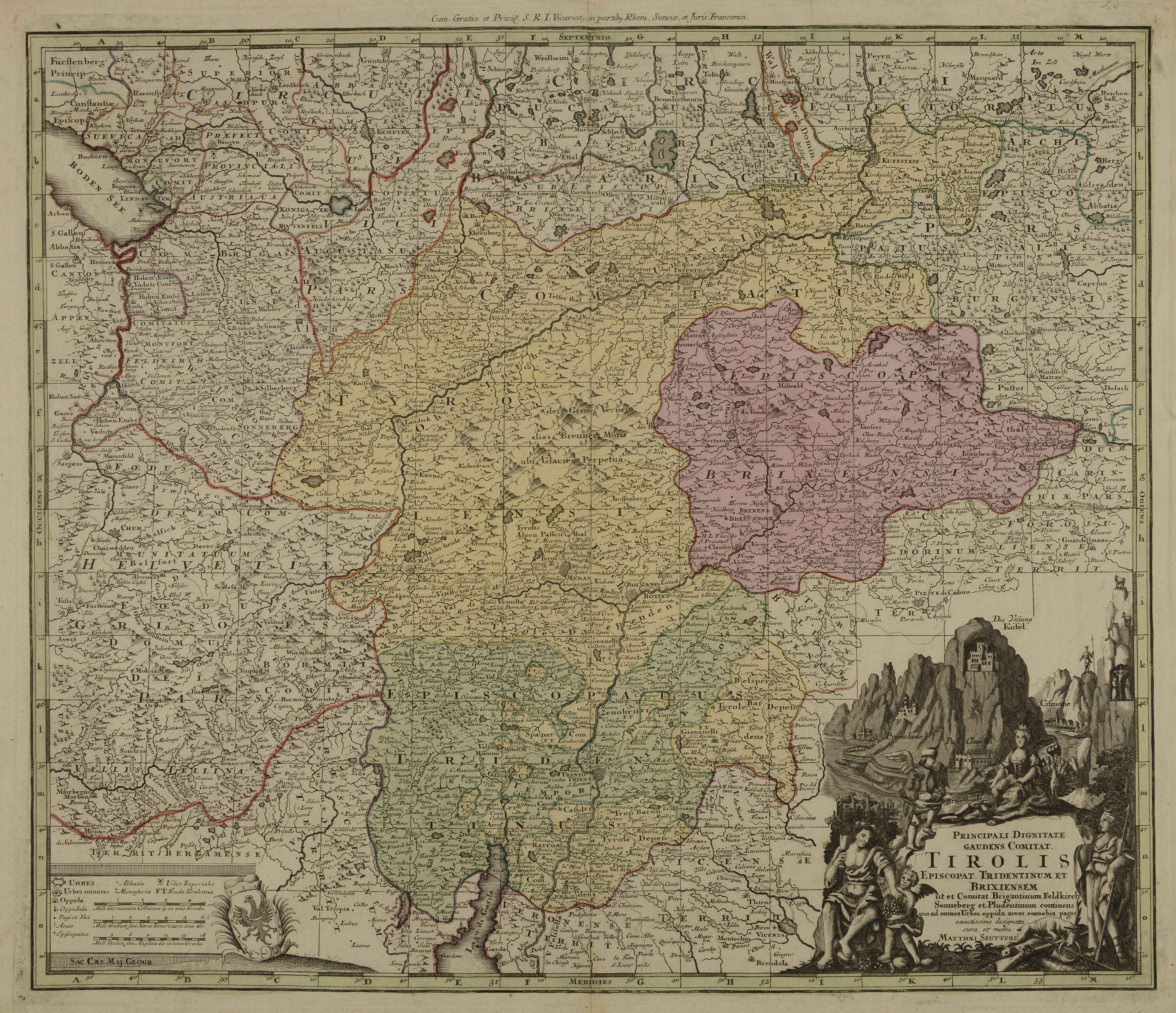 | Principali dignitate gaudens comitat. Tirolis episcopat. Tridentinum et Brixiensiem ut et comitat. Brigantinum, Feldkirch Sonneberg et Pludentinum continens quo ad omnes urbes, oppida, arces, coenobia, pagos exactissime designata |
