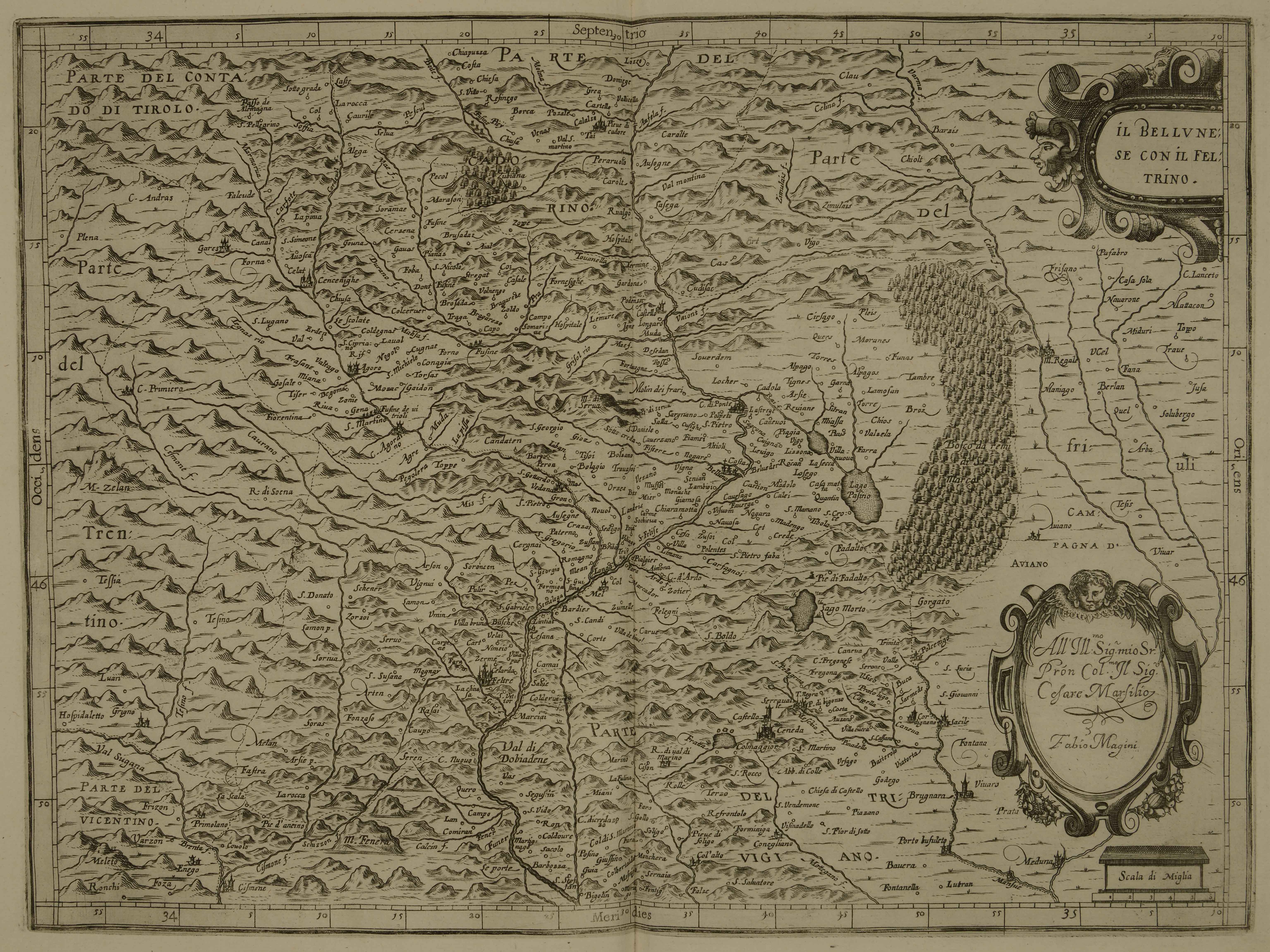 Calcografia; 341x459 mm. Dedica di Fabio Magini a Cesare Marsilio: pubblicata in Giovanni Antonio Magini, Italia, Bologna, Fabio Magini, 1620