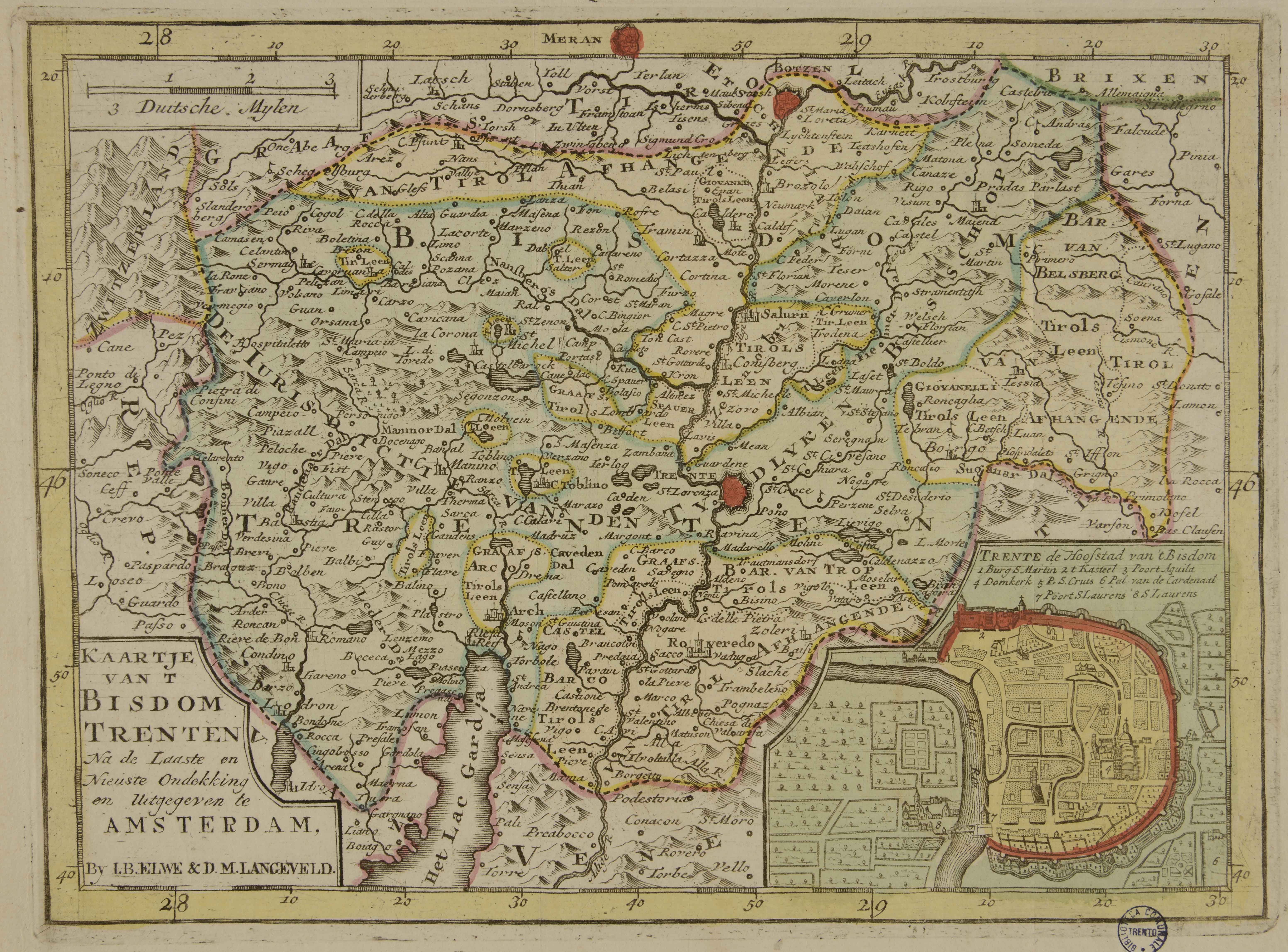 Calcografia; 18x244 mm. Cfr. Franco Cappelletti, Imago Tridenti. Incisioni e libri illustrati dal XV al XVIII secolo, Trento, Biblioteca comunale di Trento, 1996, pp. 259-260