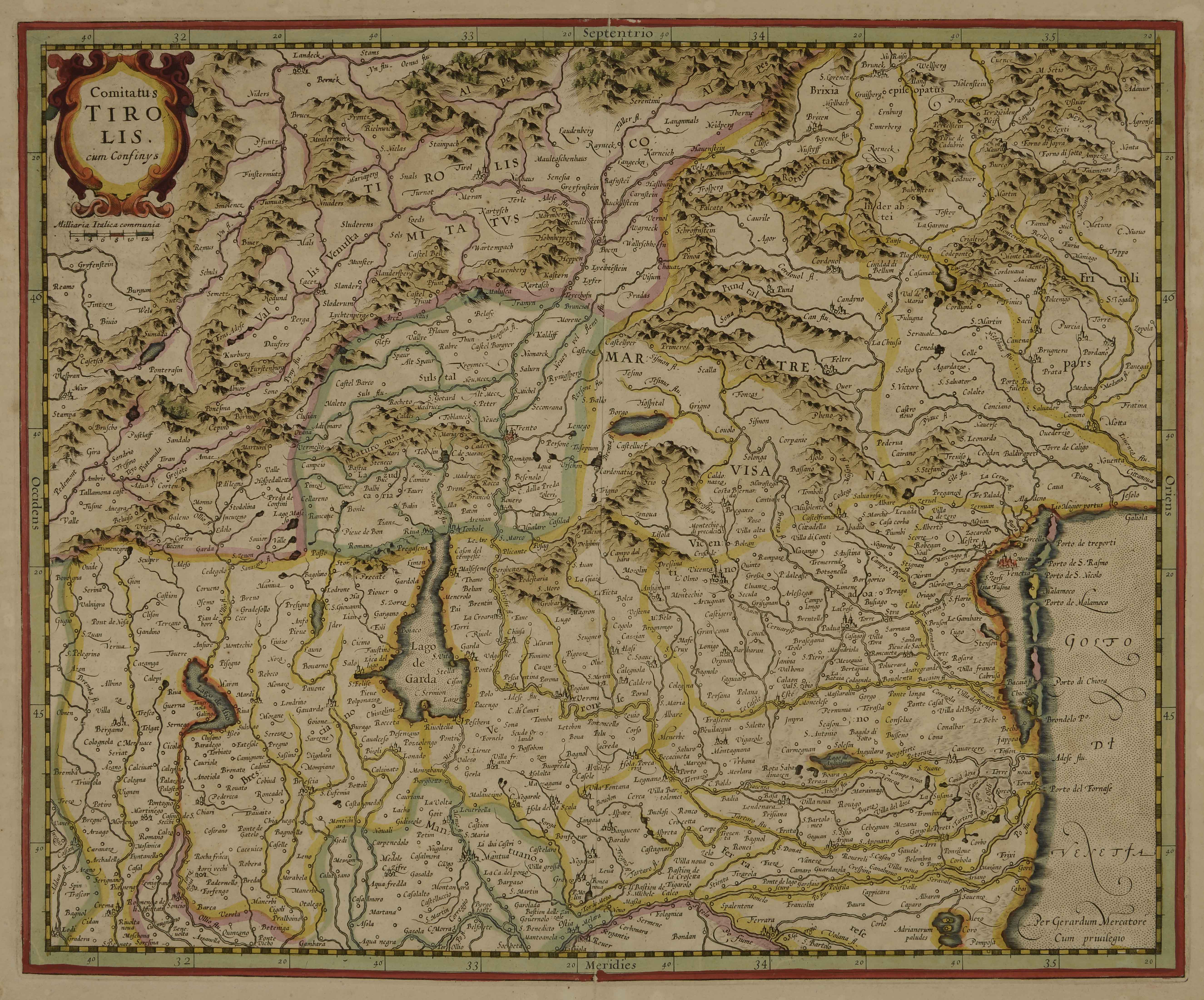 Calcografia; 335x410 mm. Cfr. Gino Tomasi, Il territorio trentino-tirolese nell'antica cartografia, Ivrea, Priuli &, Verlucca, 1997, scheda 22