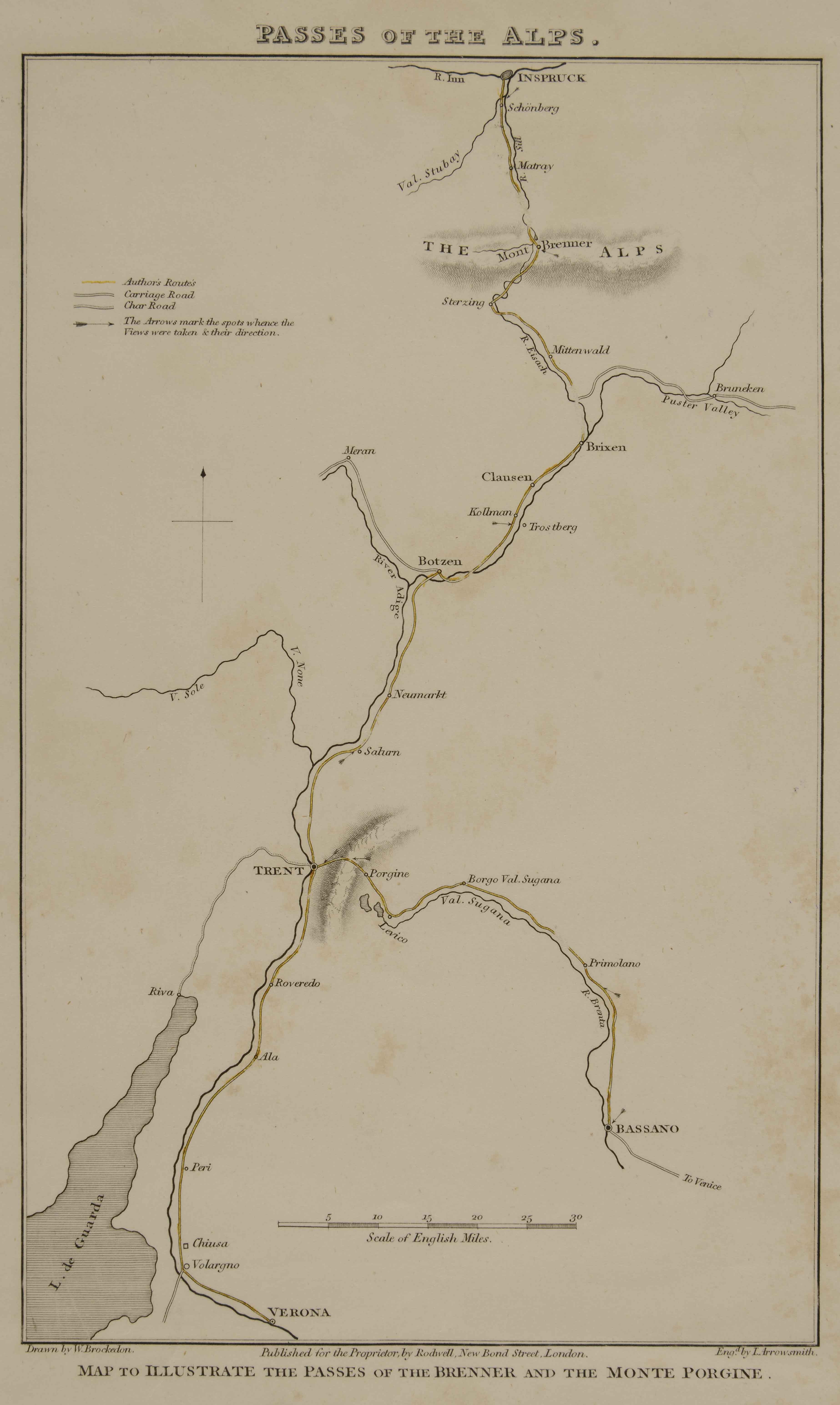 | Passes of the Alps. Map to illustrate the passes of the Brenner and the Monte Porgine |