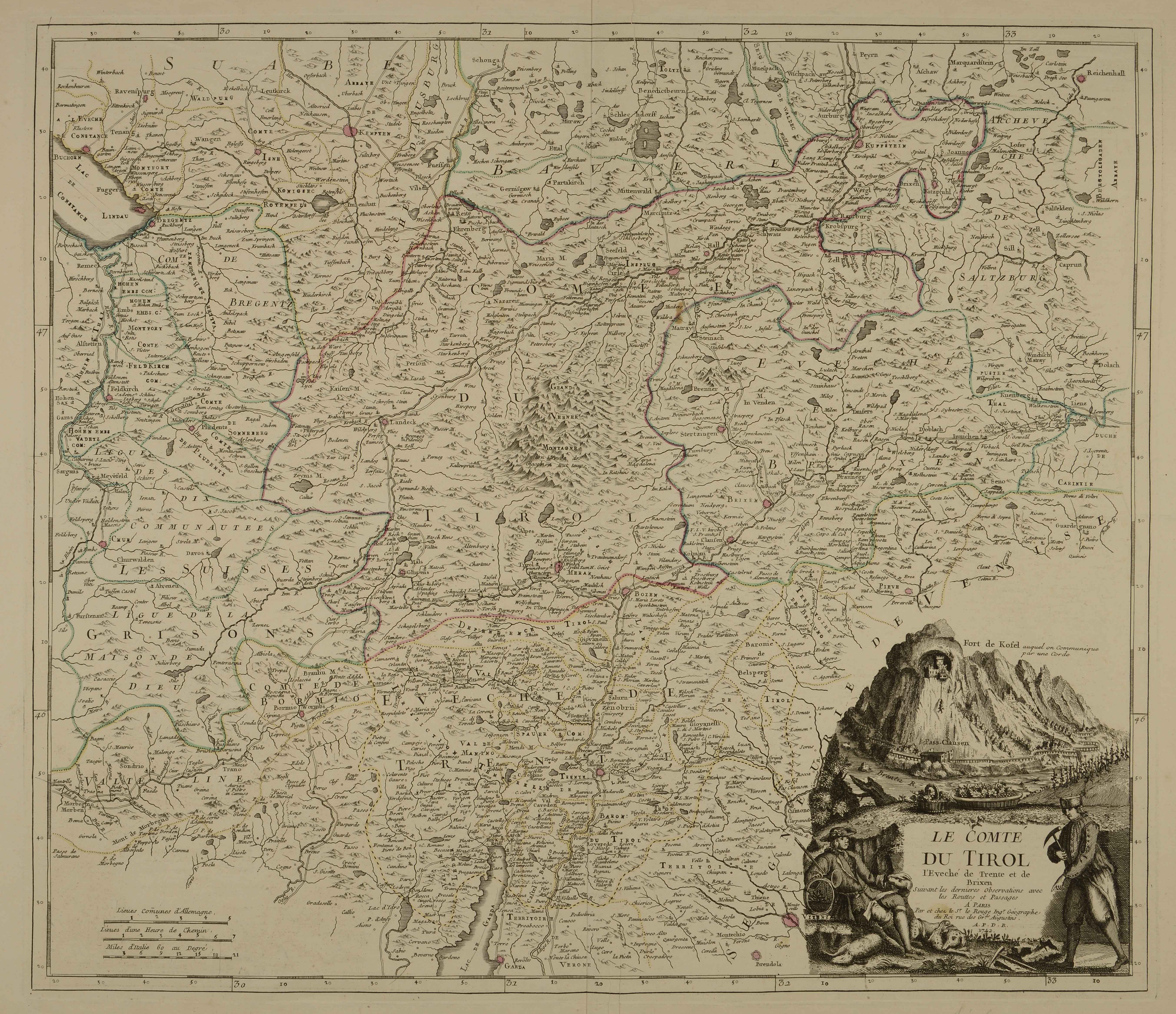 | Le comté du Tirol l’eveché de Trente et de Brixen suivant les dernieres observations avec les routtes et passages |