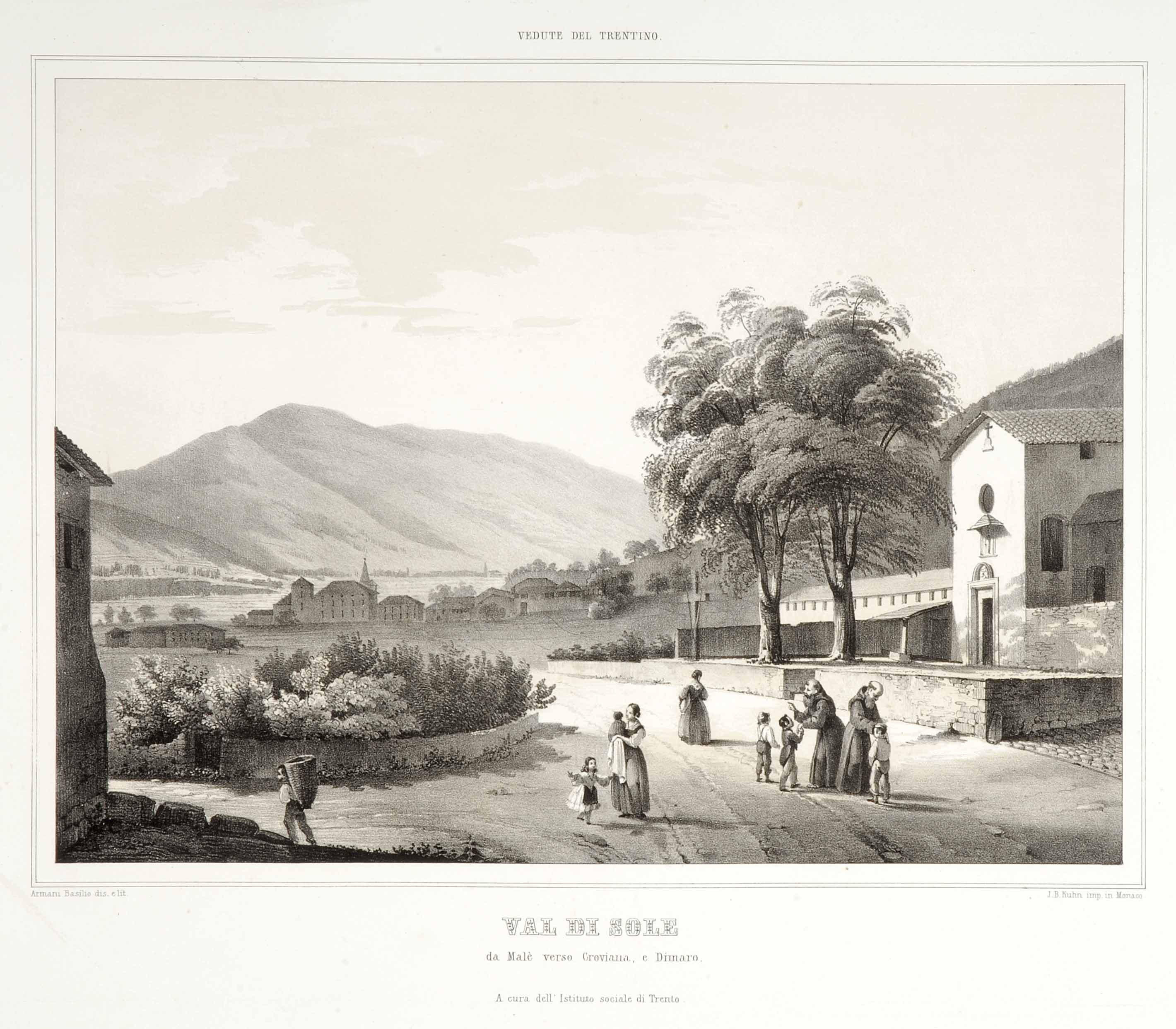Litografia; 229x308 mm, su foglio 392x571 mm. Disegno e litografia di Basilio Armani, edita a cura dell'Istituto Sociale di Trento e stampata a Monaco da J. B. Kuhn, data di pubblicazione da Basilio Armani, 1817-1899, Panorami dal Garda al Tirolo, Riva del Garda, Comune di Riva del Garda, Museo Civico, 1999, schede 54-67