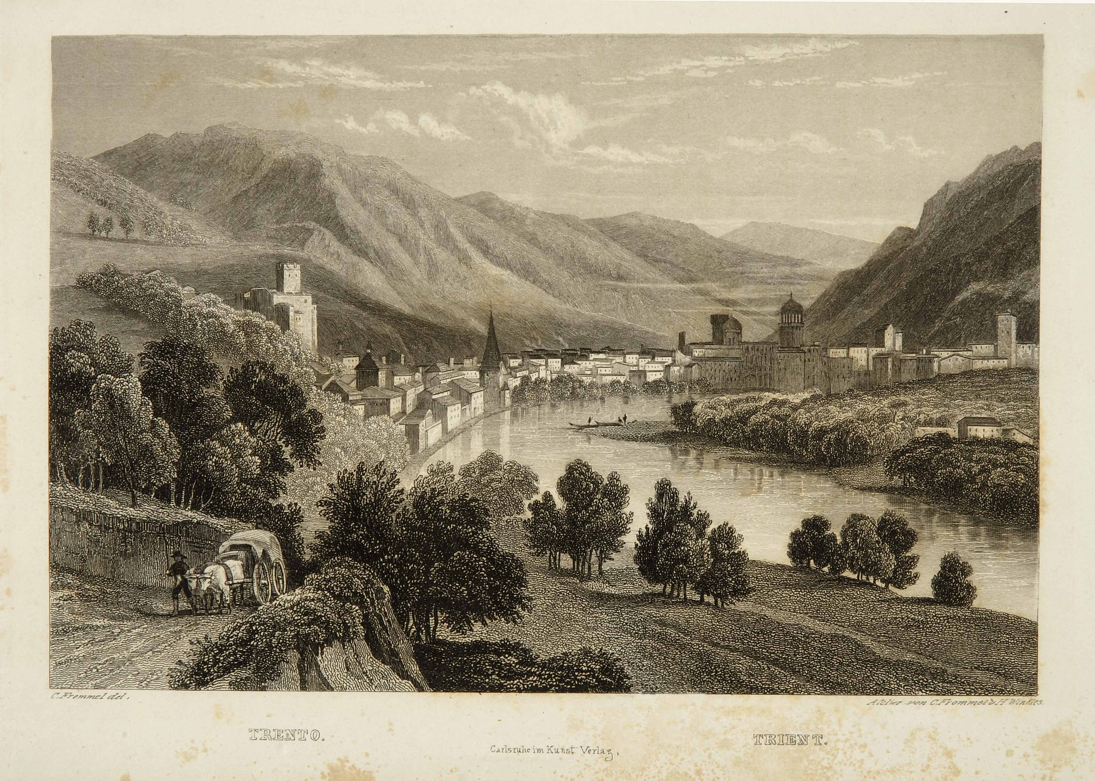 Calcografia; 110x165 mm. Disegno di Carl Ludwig Frommel, incisione di Carl Ludwig Frommel e Henri Winkles, data di pubblicazione da Aldo Chemelli, Trento nelle stampe d'arte, Trento, Provincia autonoma di Trento, Ufficio beni librari e archivistici, 1990, p. 196