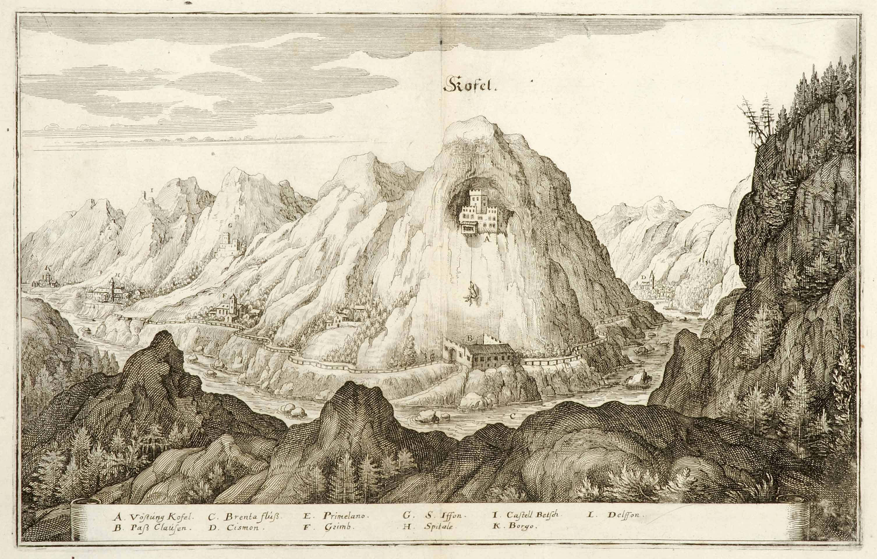 Calcografia, 195x305 mm, 198x310 mm. Disegno di Matthäus Merian, pubblicata nella prima parte (datata 1649) di Martin Zeiller, Matthäus Merian, Topographia provinciarum Austriacarum Austriae Styriae, Carinthiae, Carniolae, Tyrolis etc., das ist, Beschreibung und Abbildung der furnembsten Statt und Plätz in den Osterreichischen Landen ..., Frankfurt am Main, Matthäus Merian, 1649-1656