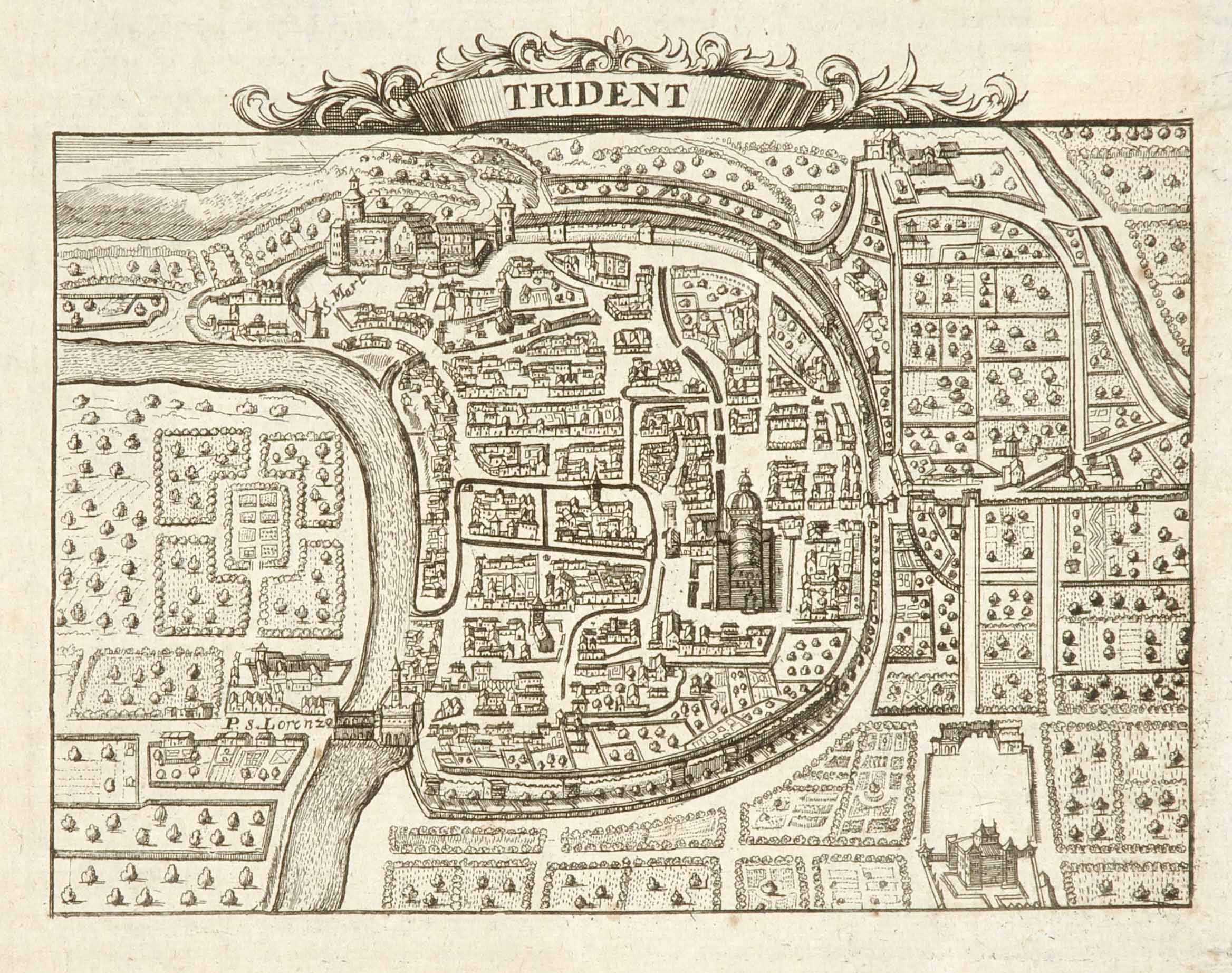 Calcografia; 100x145 mm, 125x165 mm. Pubblicata tra il 1706 e il 1740, data di pubblicazione e note tipografiche da Franco Cappelletti, Imago Tridenti. Incisioni e libri illustrati dal XV al XVIII secolo, Trento, Biblioteca comunale di Trento, 1996, pp. 211-213