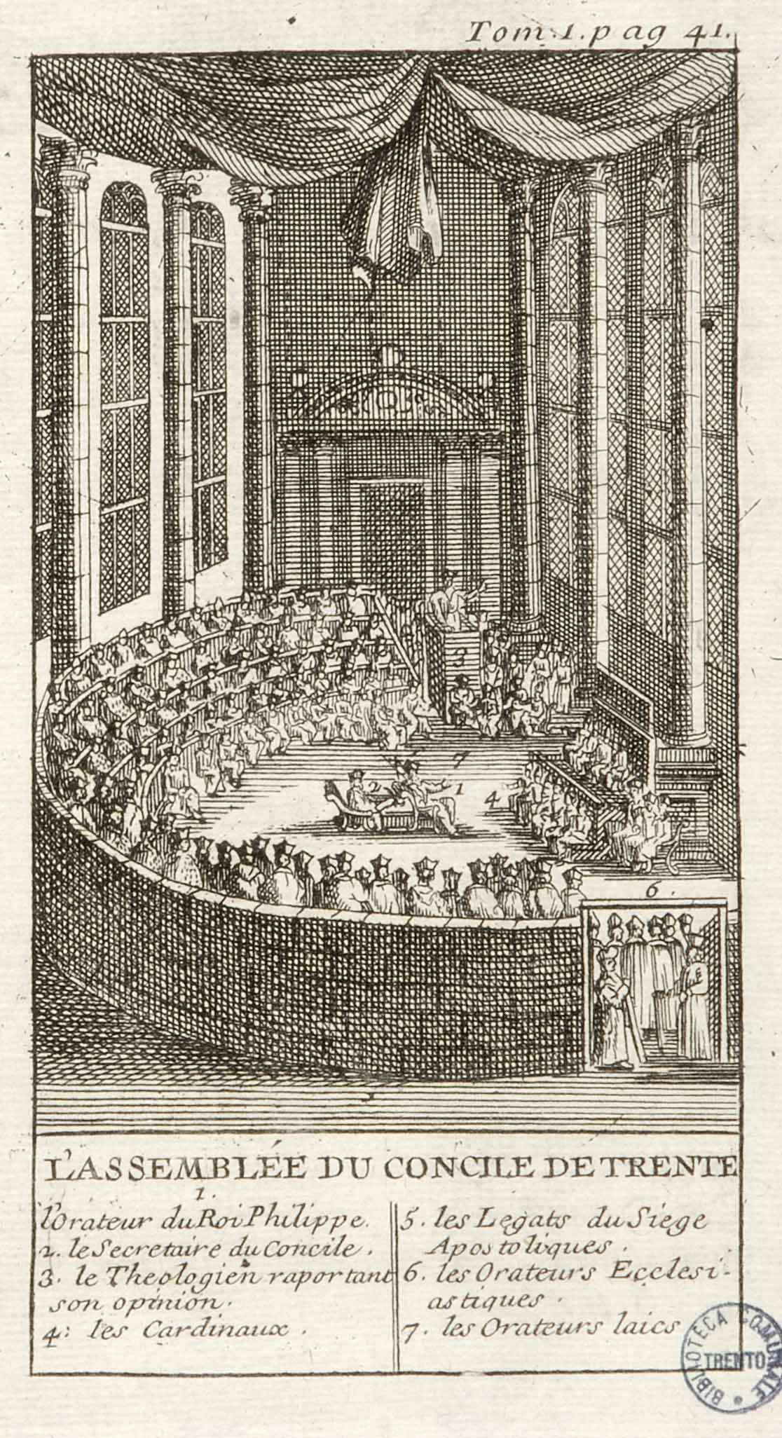 Calcografia; 119x65 mm, 159x79 mm. Pubblicata a Parigi dalla Compagnie des libraires nel 1707 e ad Amsterdam da Pieter Mortier II nel 1740. Cfr. Franco Cappelletti, Imago Tridenti. Incisioni e libri illustrati dal XV al XVIII secolo, Trento, Biblioteca comunale di Trento, 1996, pp. 215-217
