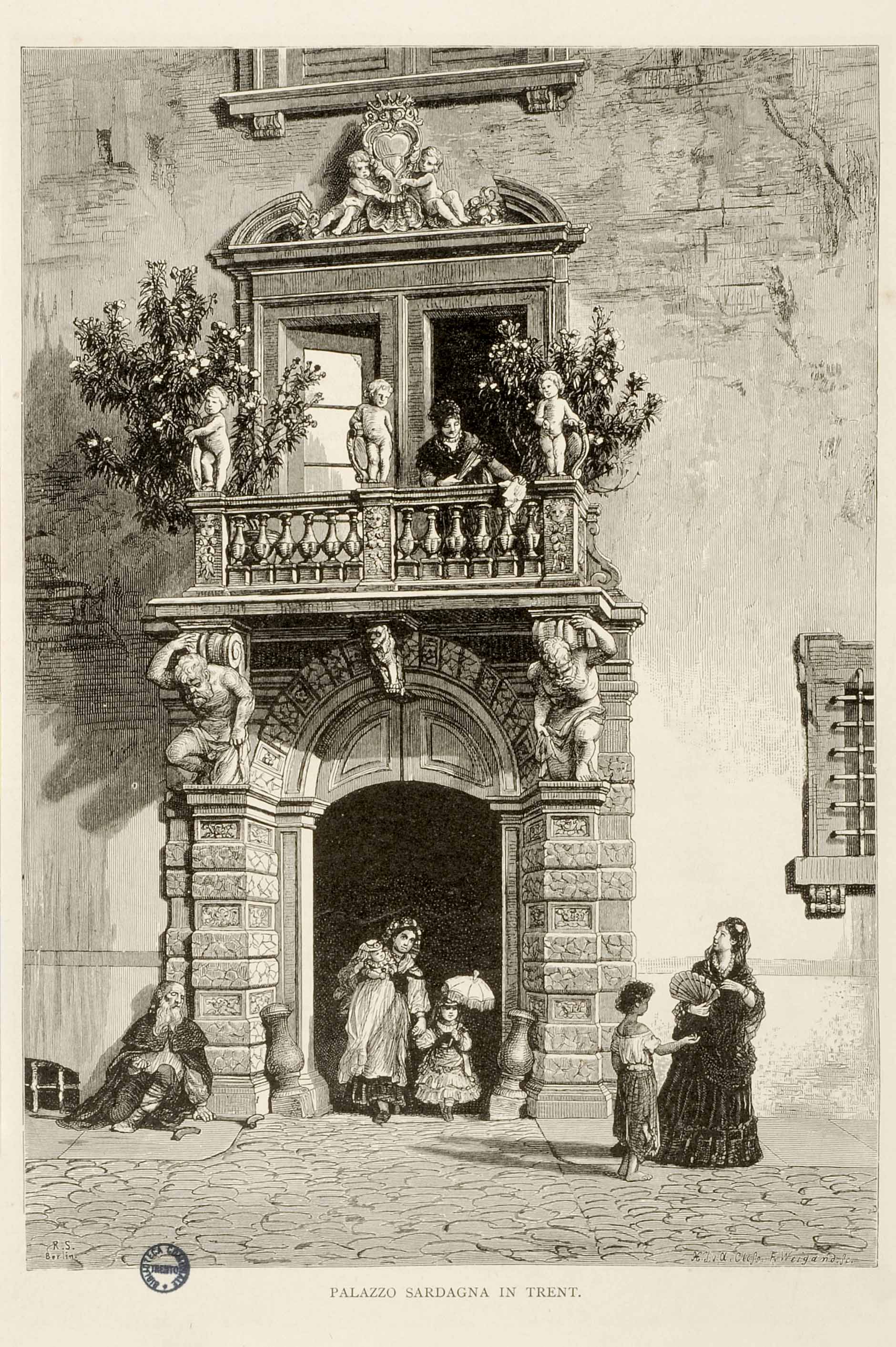 Litografia; 248x173 mm, su foglio 338x241 mm. Disegno di Adolf Closs, incisione di Friedrich Weigand, pubblicata anche in Italien. Eine Wanderung von den Alpen bis zum Aetna, Stuttgart, Engelhorn, 1876
