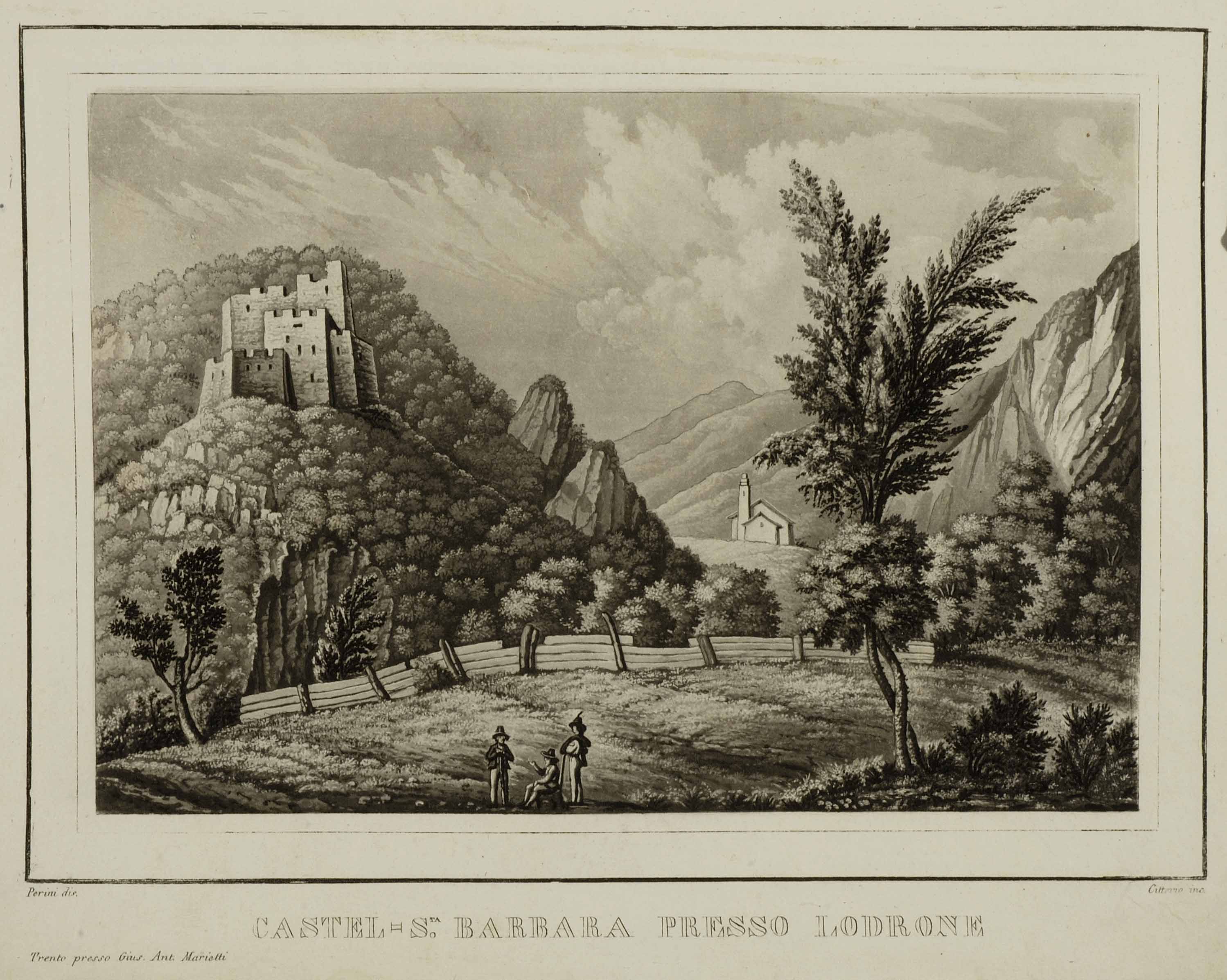 Calcografia; 187x260 mm, 230x293 mm. Disegno di Agostino Perini, incisione di Francesco Citterio, pubblicata in Agostino Perini, I castelli del Tirolo colla storia delle relative antiche potenti famiglie, Milano, Pirrotta, a spese di Giuseppe Antonio Marietti, 1834-1839