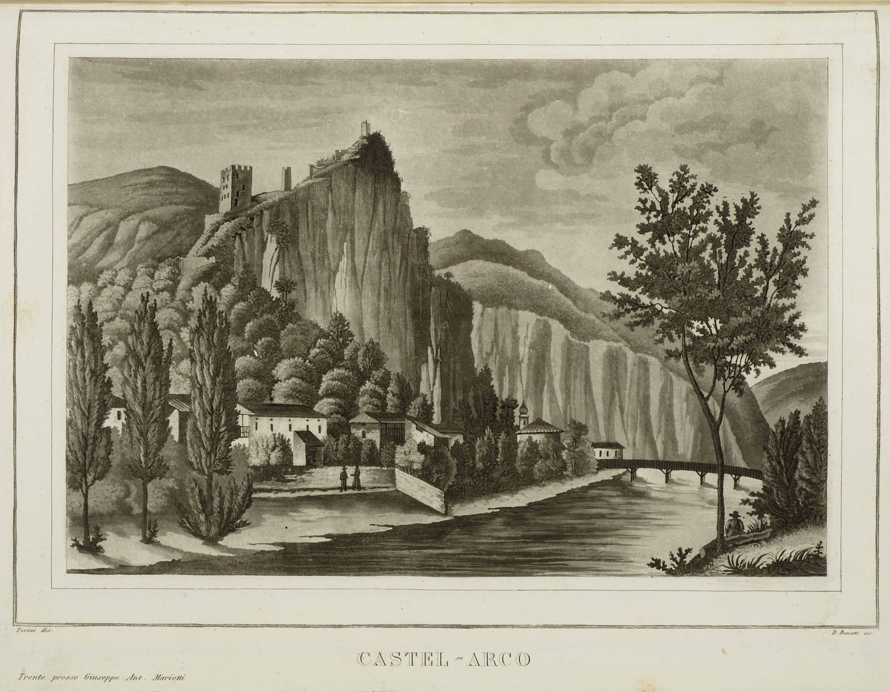 Calcografia; 186x260 mm, 210x277 mm. Disegno di Agostino Perini, incisione di Domenico Bonatti, pubblicata in Agostino Perini, I castelli del Tirolo colla storia delle relative antiche potenti famiglie, Milano, Pirrotta, a spese di Giuseppe Antonio Marietti, 1834-1839
