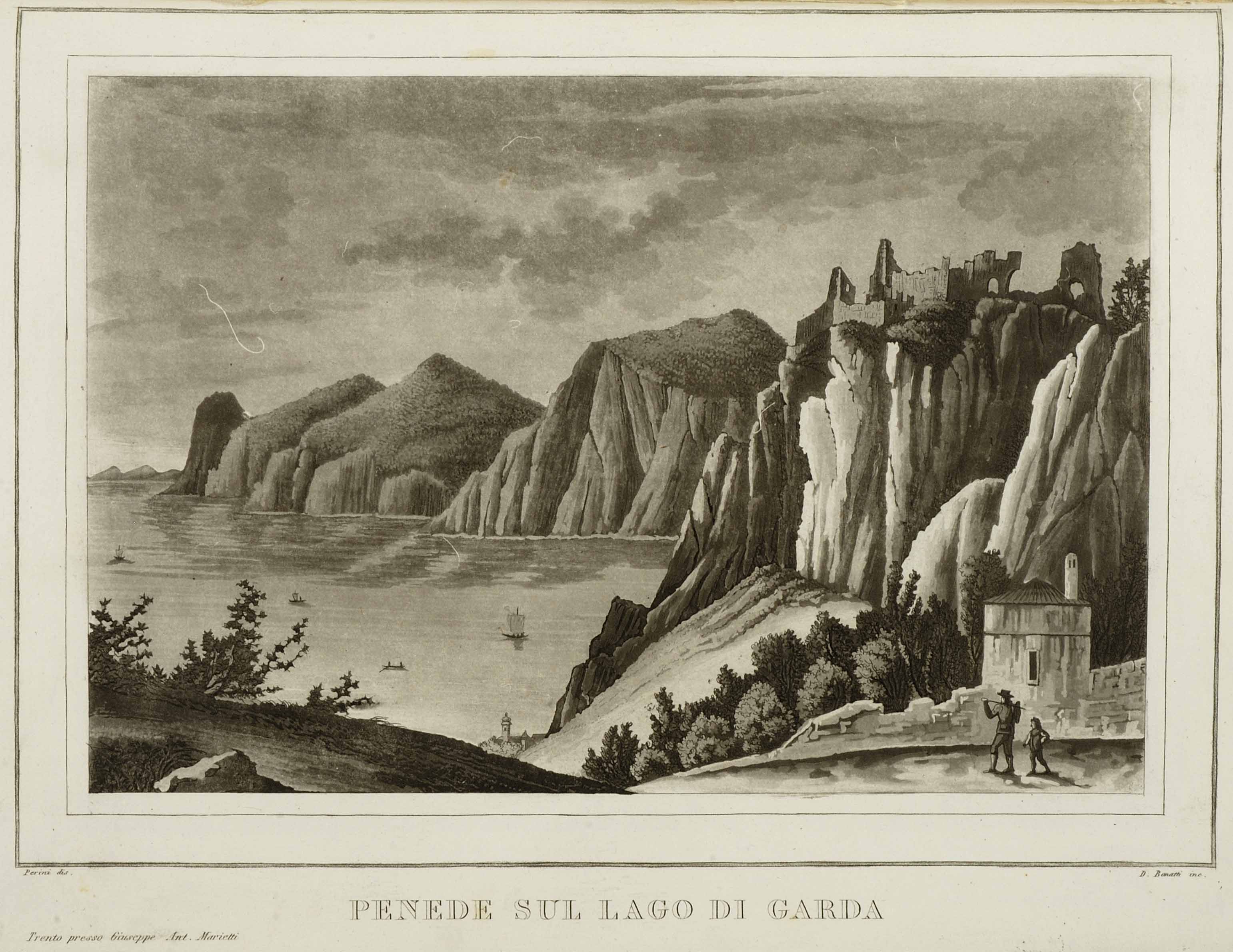 Calcografia; 187x260 mm, 210x280 mm. Disegno di Agostino Perini, incisione di Domenico Bonatti, pubblicata in Agostino Perini, I castelli del Tirolo colla storia delle relative antiche potenti famiglie, Milano, Pirrotta, a spese di Giuseppe Antonio Marietti, 1834-1839