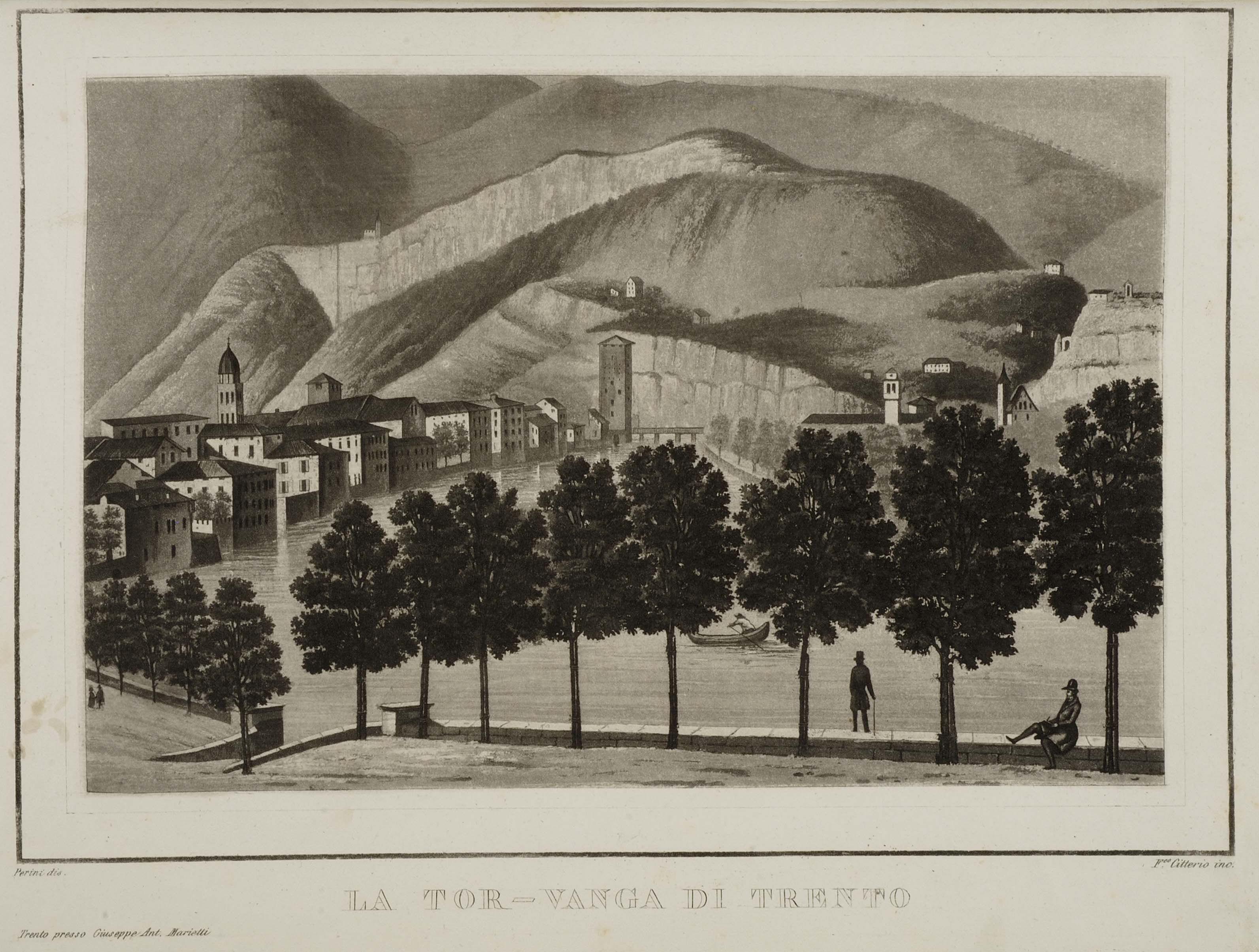 Calcografia, 192x276 mm, 222x307 mm. Disegno di Agostino Perini, incisione di Francesco Citterio, pubblicata in Agostino Perini, I castelli del Tirolo colla storia delle relative antiche potenti famiglie, Milano, Pirrotta, a spese di Giuseppe Antonio Marietti, 1834-1839