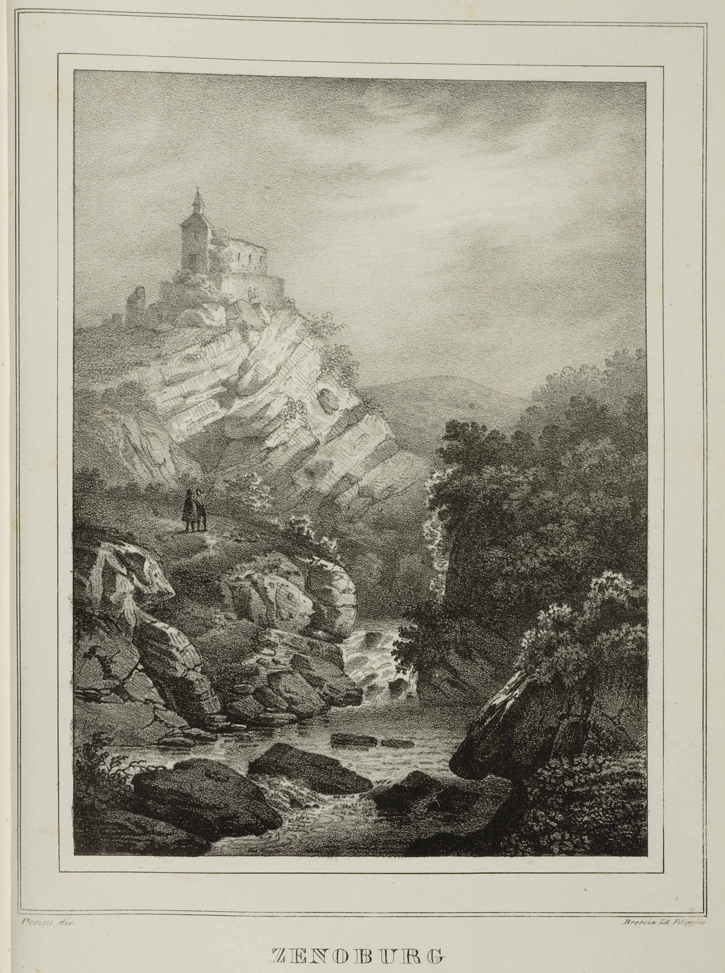 Litografia; 257x197 mm, su foglio 339x236 mm. Disegno di Agostino Perini, litografia effettuata dalla ditta Filippini di Brescia, pubblicata in Agostino Perini, I castelli del Tirolo colla storia delle relative antiche potenti famiglie, Milano, Pirrotta, a spese di Giuseppe Antonio Marietti, 1834-1839