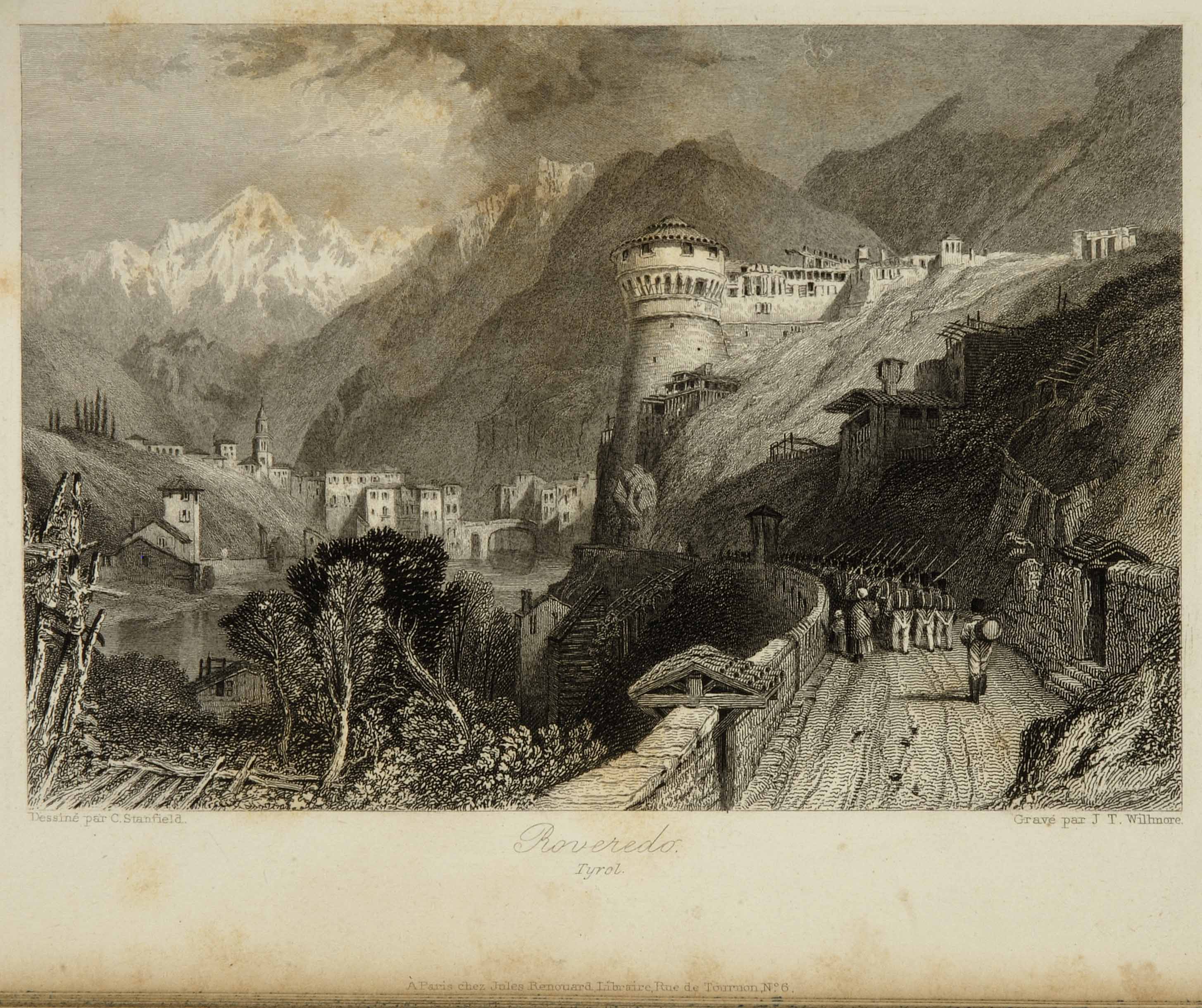 Calcografia; 96x143 mm, su foglio 136x215 mm. Disegno di Clarkson William Stanfield, incisione di James Tibbitts Willmore, pubblicata in Promenades d'un artiste, Tyrol-Suisse Nord de l'Italie, Paris, Renouard, [1835]