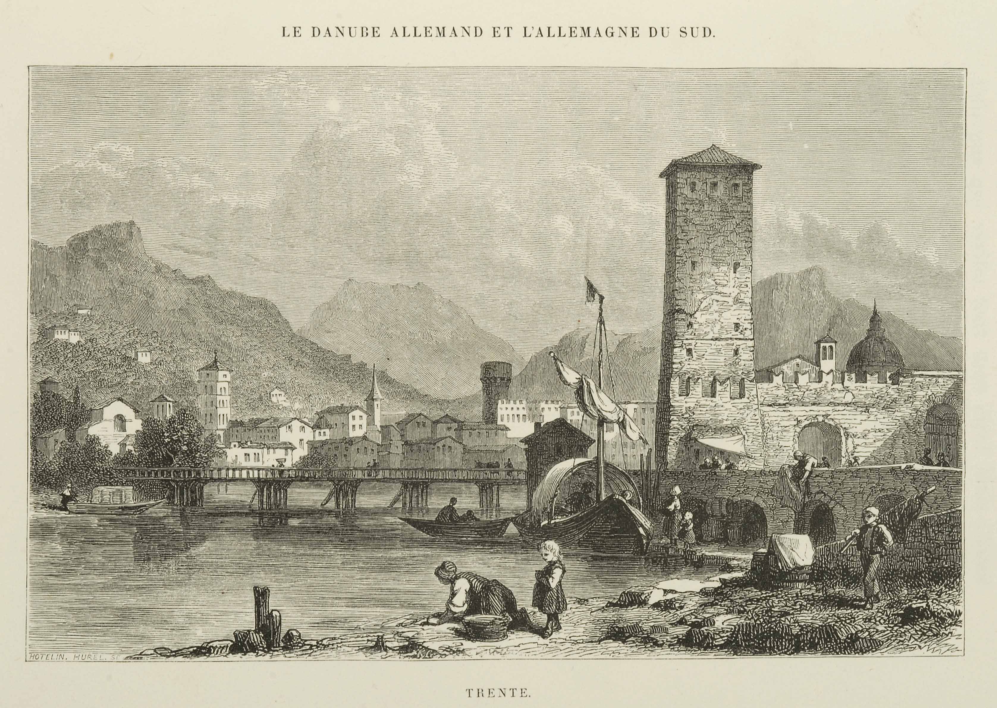 Calcografia; 98x156 mm, 140x238 mm. Incisione di Eloy-Laurent Hotelin e Alexandre Hurel, pubblicata in Hippolyte Durand, Le Danube Allemand et l'Allemagne du sud, voyage dans la Forèt-Noire, la Bavière, l'Autriche, la Bohème, la Hongrie, l'Istrie, la Vénétie et le Tyrol, Tours, Mame, 1863