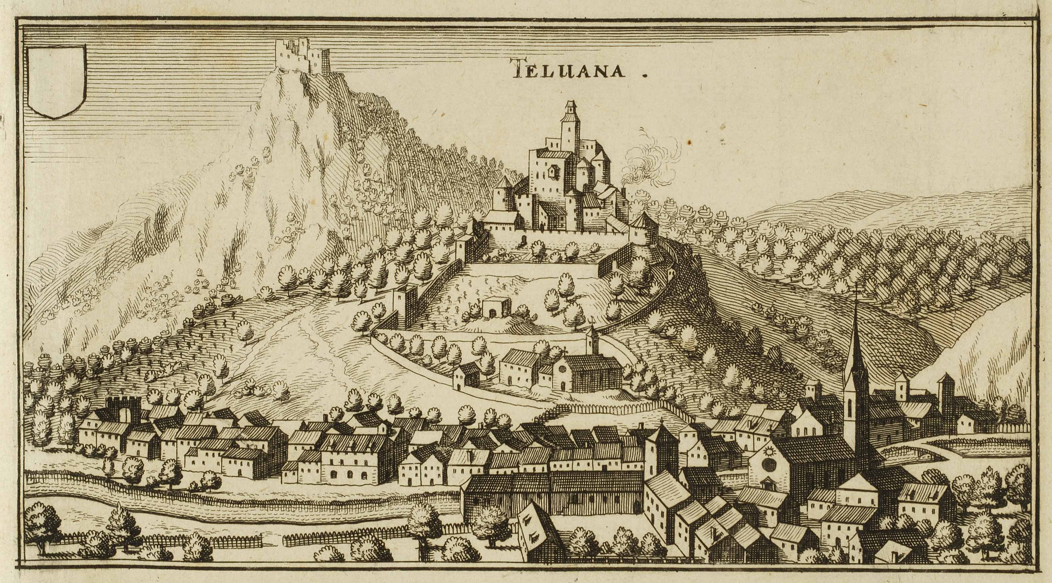 Calcografia, 94x174 mm, 292x180 mm. Disegno di Matthäus Merian, pubblicata nella prima parte (datata 1649) di Martin Zeiller, Matthäus Merian, Topographia provinciarum Austriacarum Austriae Styriae, Carinthiae, Carniolae, Tyrolis etc., das ist, Beschreibung und Abbildung der furnembsten Statt und Plätz in den Osterreichischen Landen ..., Frankfurt am Main, Matthäus Merian, 1649-1656