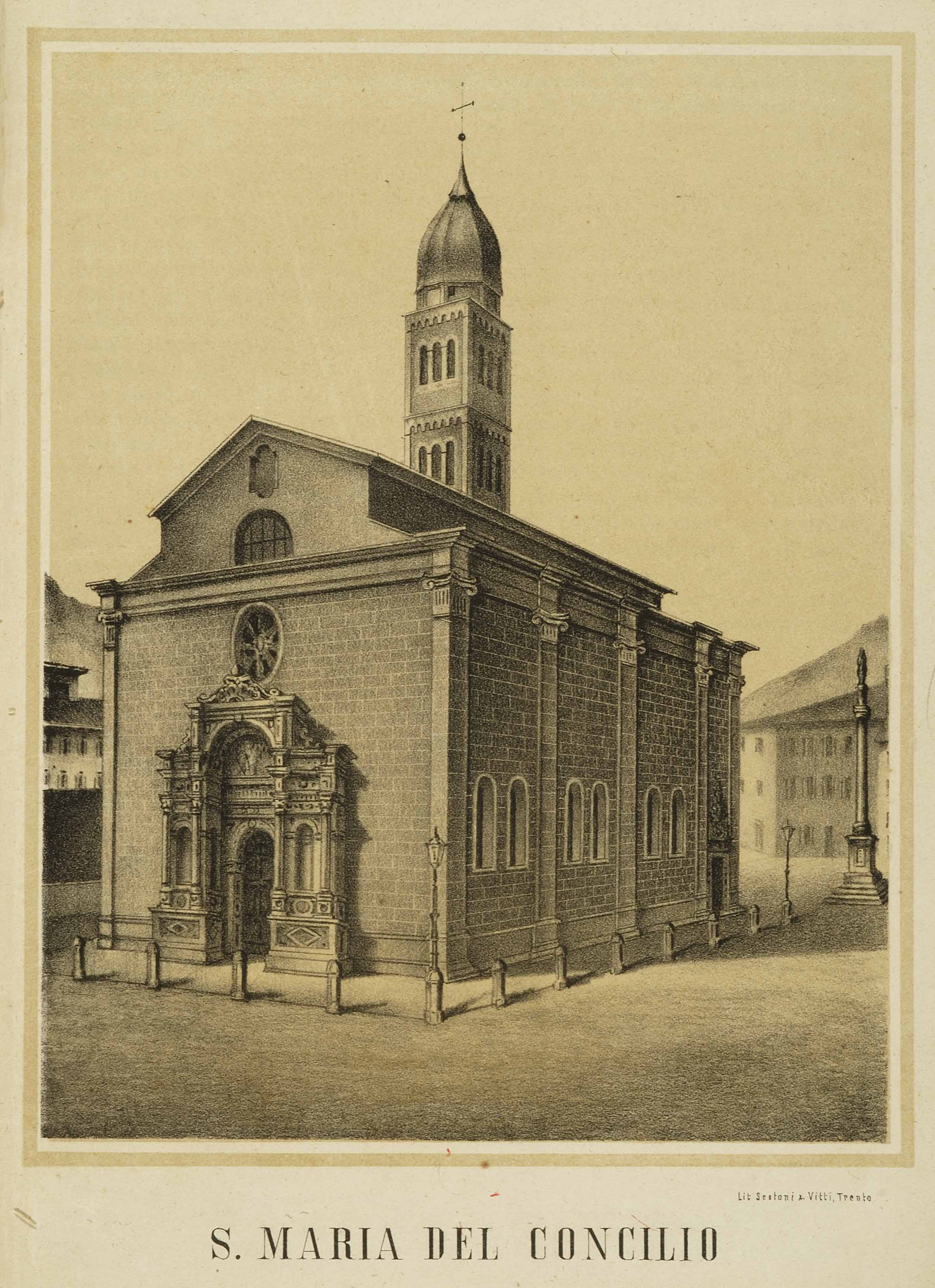 Litografia; 208x163 mm, su foglio 275x187 mm. Pubblicata in Giovanni Battista Zanella, S. Maria di Trento, cenni storici, Trento, Monauni, 1879