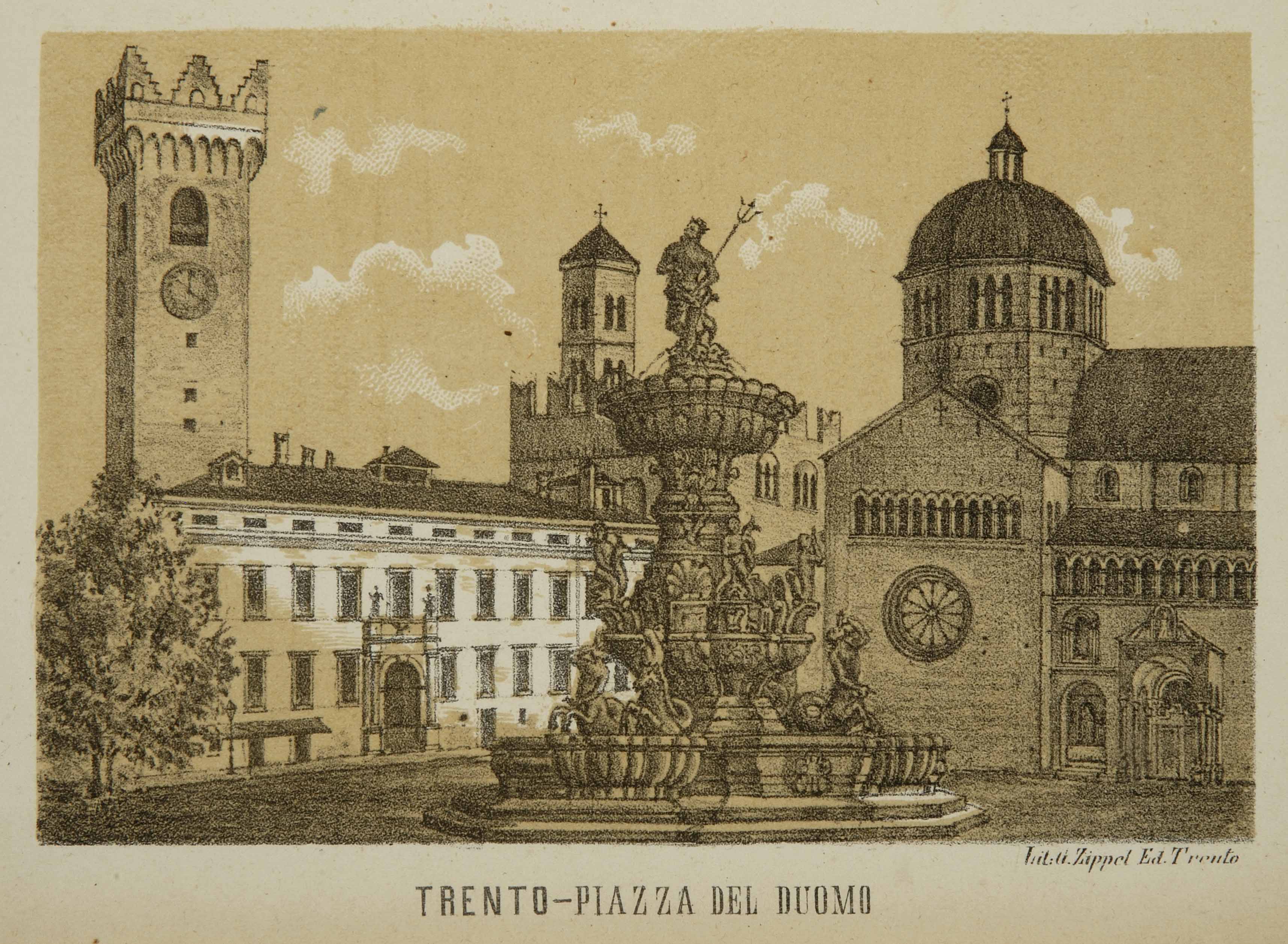 Litografia; 89x132 mm, su foglio 108x169 mm. Pubblicata in Francesco Ambrosi, Trento e il suo circondario descritti al viaggiatore, Trento, Zippel, 1881