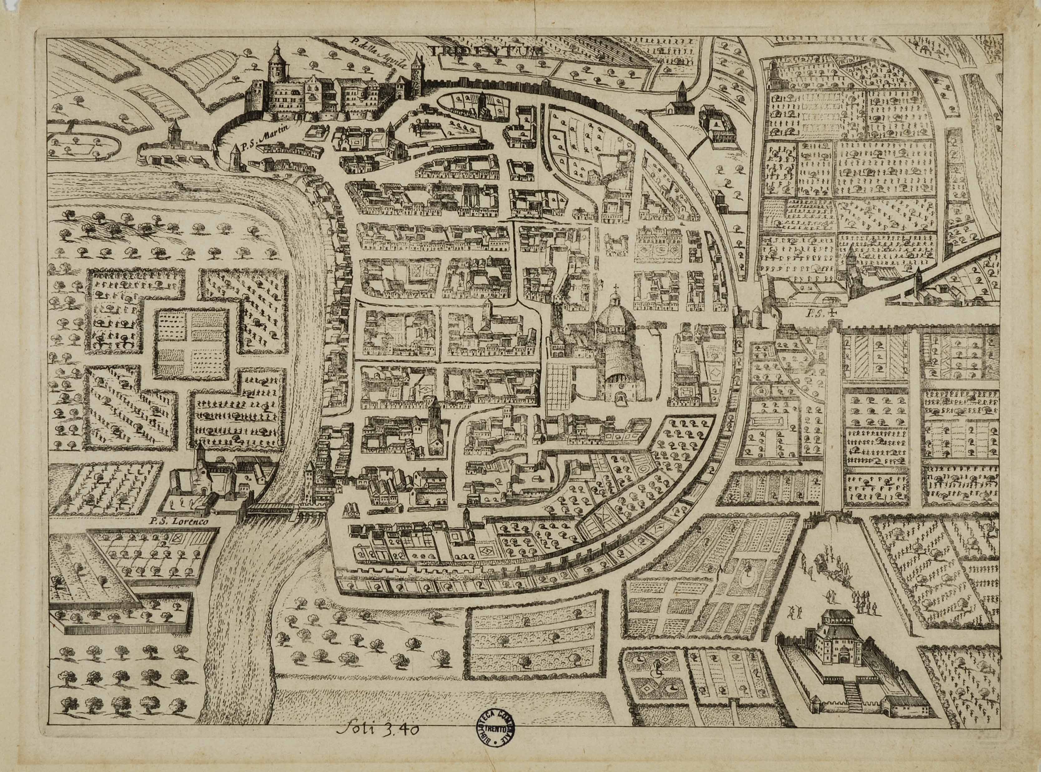 Calcografia; 177x244 mm, 182x246 mm. Pubblicata nel 1626 ad Amsterdam da Josse Hondt e nel 1627 a Leiden da Bonaventura e Abraham Elsevier. Cfr. Franco Cappelletti, Imago Tridenti. Incisioni e libri illustrati dal XV al XVIII secolo, Trento, Biblioteca comunale di Trento, 1996, pp. 103-104