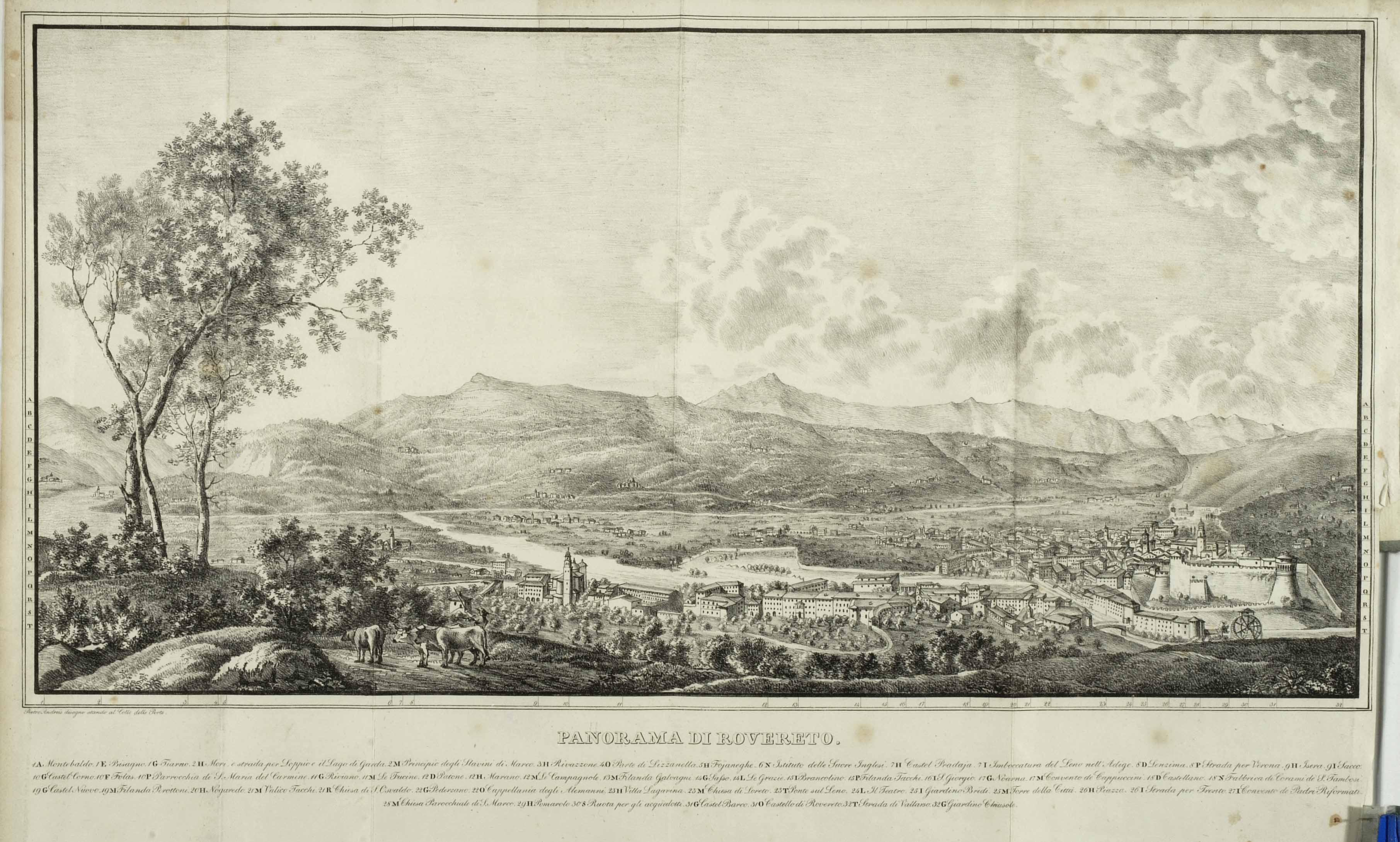 Litografia; 288x559 mm, su foglio 358x579 mm. Disegno di Pietro Andreis, pubblicata in Allgemeiner National-Kalender für Tirol und Vorarlberg ... Innsbruck, Wagner, 1825