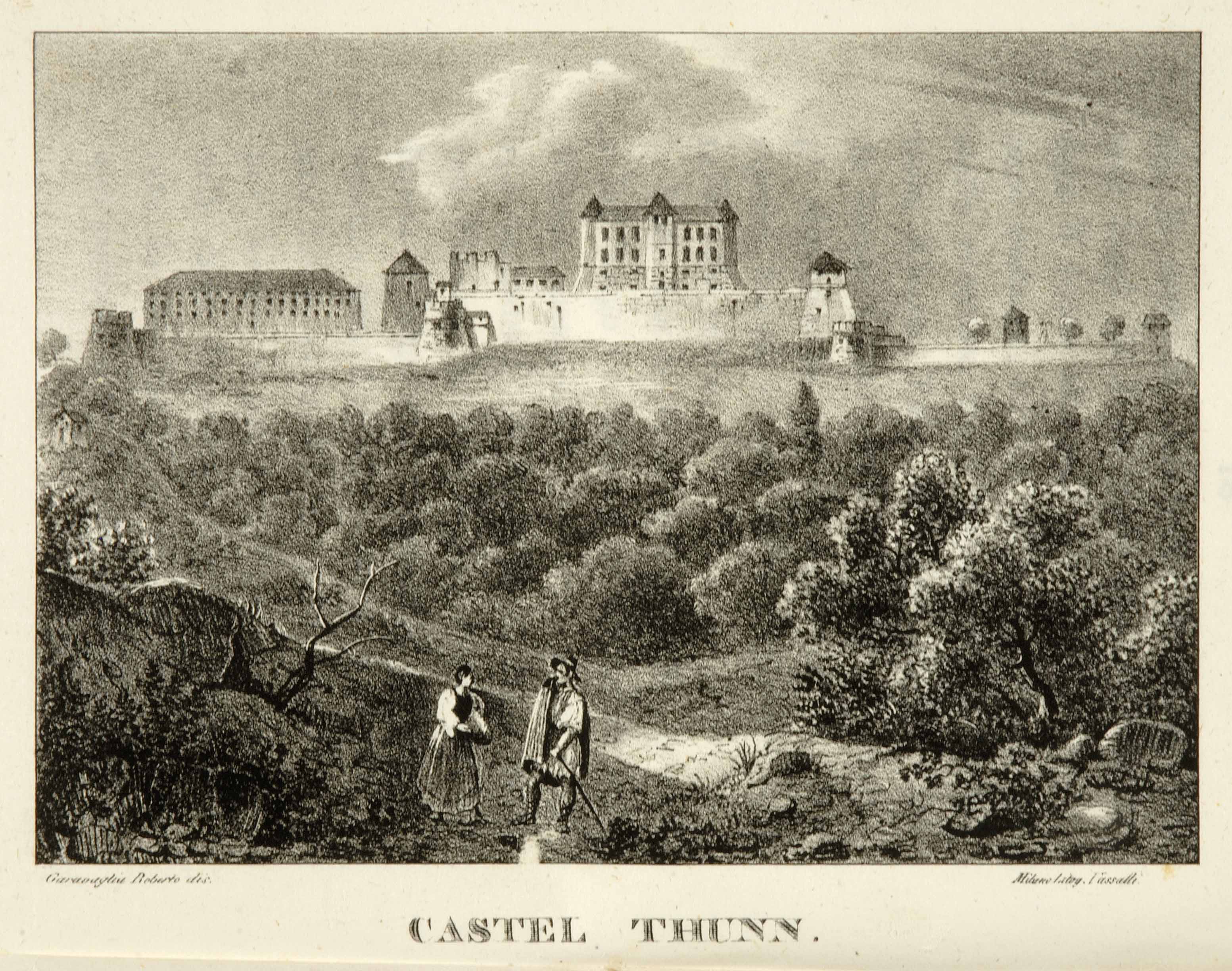 Litografia; 116x162 mm, su foglio 167x238 mm. Disegno di Roberto Garavaglia, litografia effettuata dalla ditta Vassalli di Milano, pubblicata in Giuseppe Pinamonti, La Naunia descritta al viaggiatore, Milano, Società tipografica de' classici italiani, 1829