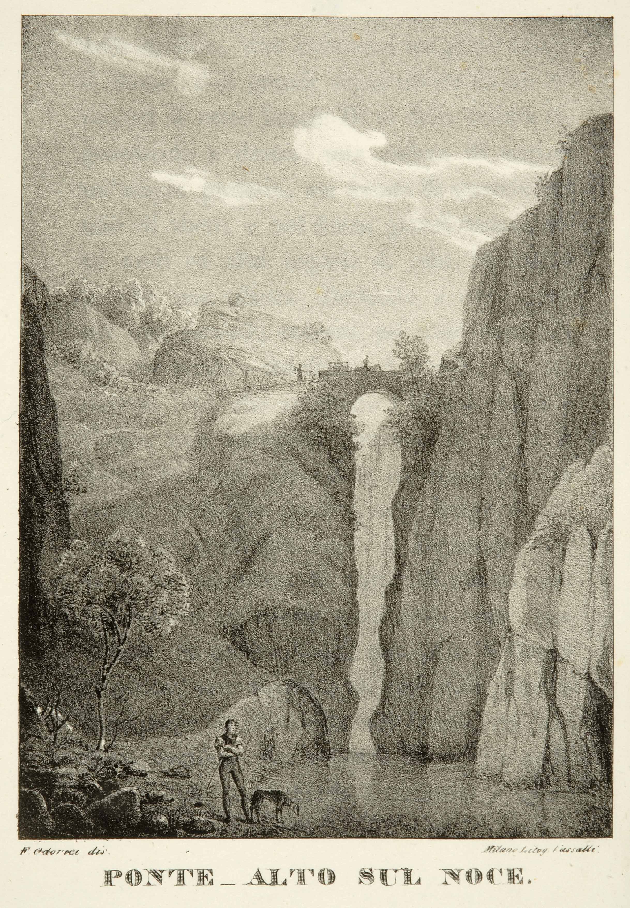 Litografia; 164x117 mm, su foglio 238x167 mm. Disegno di F. Odorici, litografia effettuata dalla ditta Vassalli di Milano, pubblicata in Giuseppe Pinamonti, La Naunia descritta al viaggiatore, Milano, Società tipografica de' classici italiani, 1829