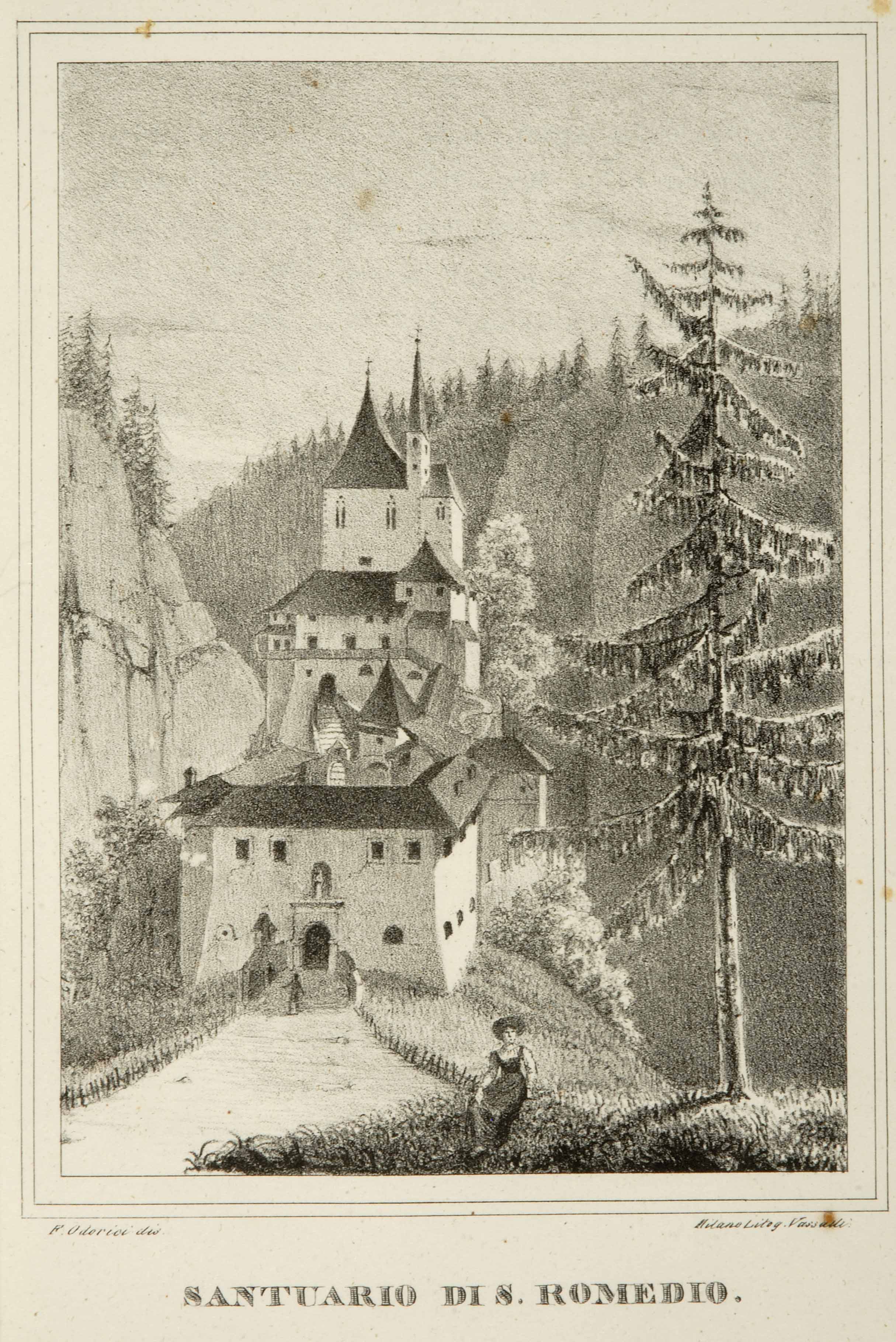 Litografia; 179x130 mm, su foglio 238x167 mm. Disegno di F. Odorici, litografia effettuata dalla ditta Vassalli di Milano, pubblicata in Giuseppe Pinamonti, La Naunia descritta al viaggiatore, Milano, Società tipografica de' classici italiani, 1829