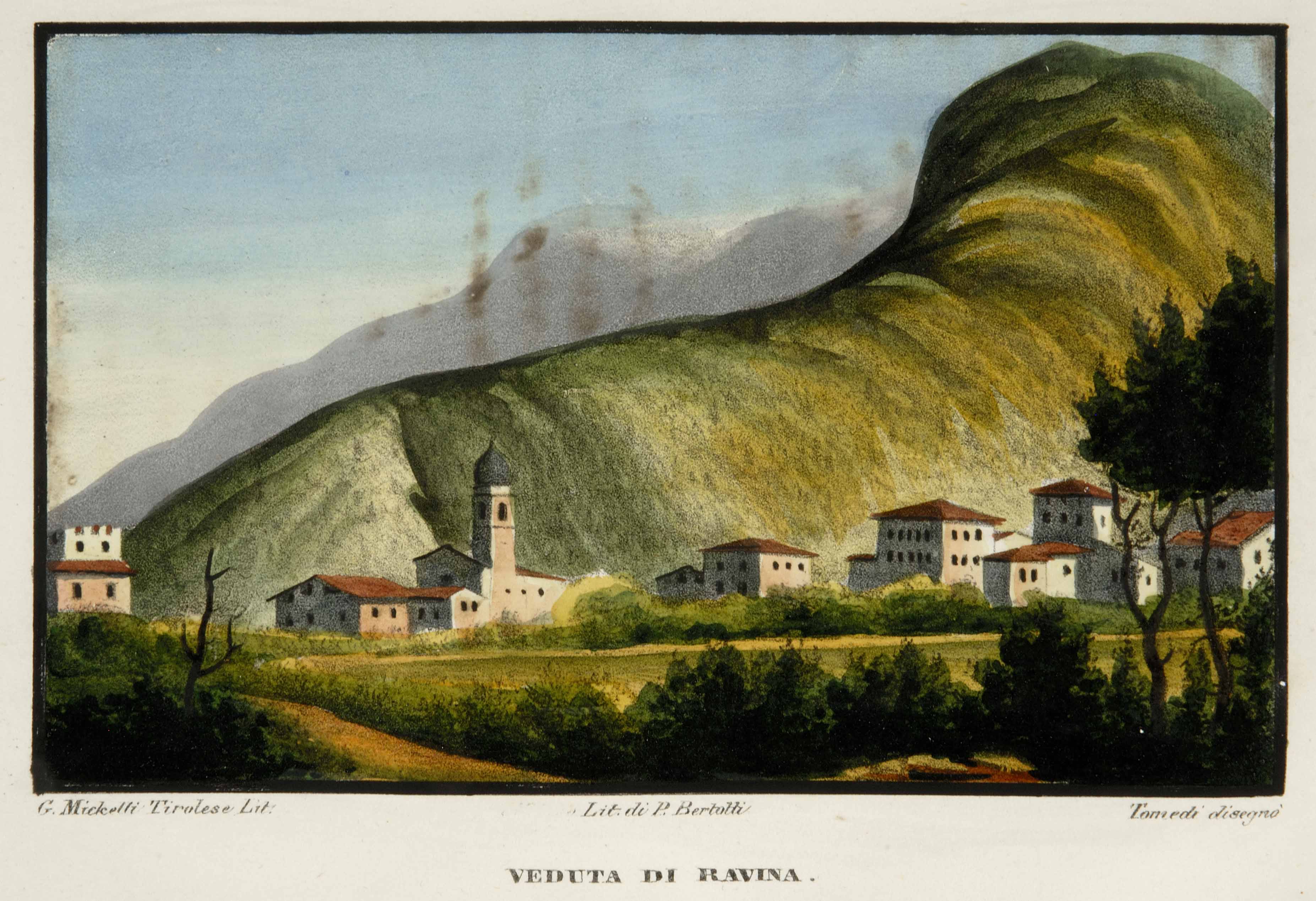 Litografia; 92x147 mm, su foglio 159x226 mm. Disegno di Lorenzo Tomedi, litografia di Giacomo Micheli, pubblicata in Giuseppe Sizzo de Noris, Memorie intorno alla famiglia tridentina dei conti Sizzo de Noris, Milano, Pirola, 1843