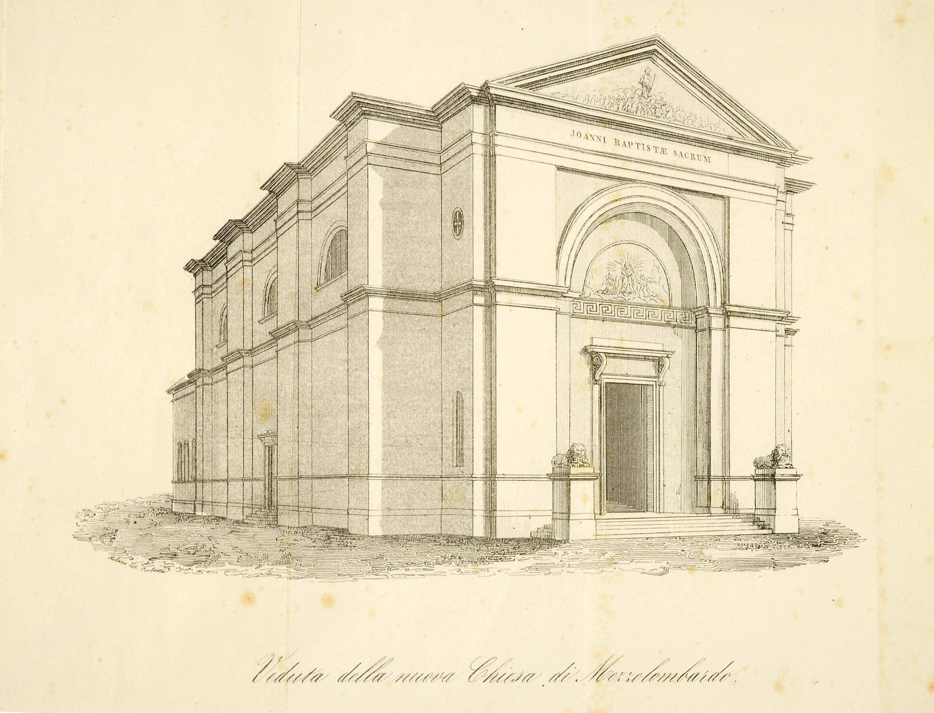 Calcografia; 221x226 mm. Carlo Nicola De Vigili, Memorie storiche documentate intorno all'erezione ed inaugurazione del nuovo tempio dedicato al divin precursore Giovanni Battista nel borgo di Mezzolombardo, Milano, Vallardi, 1851