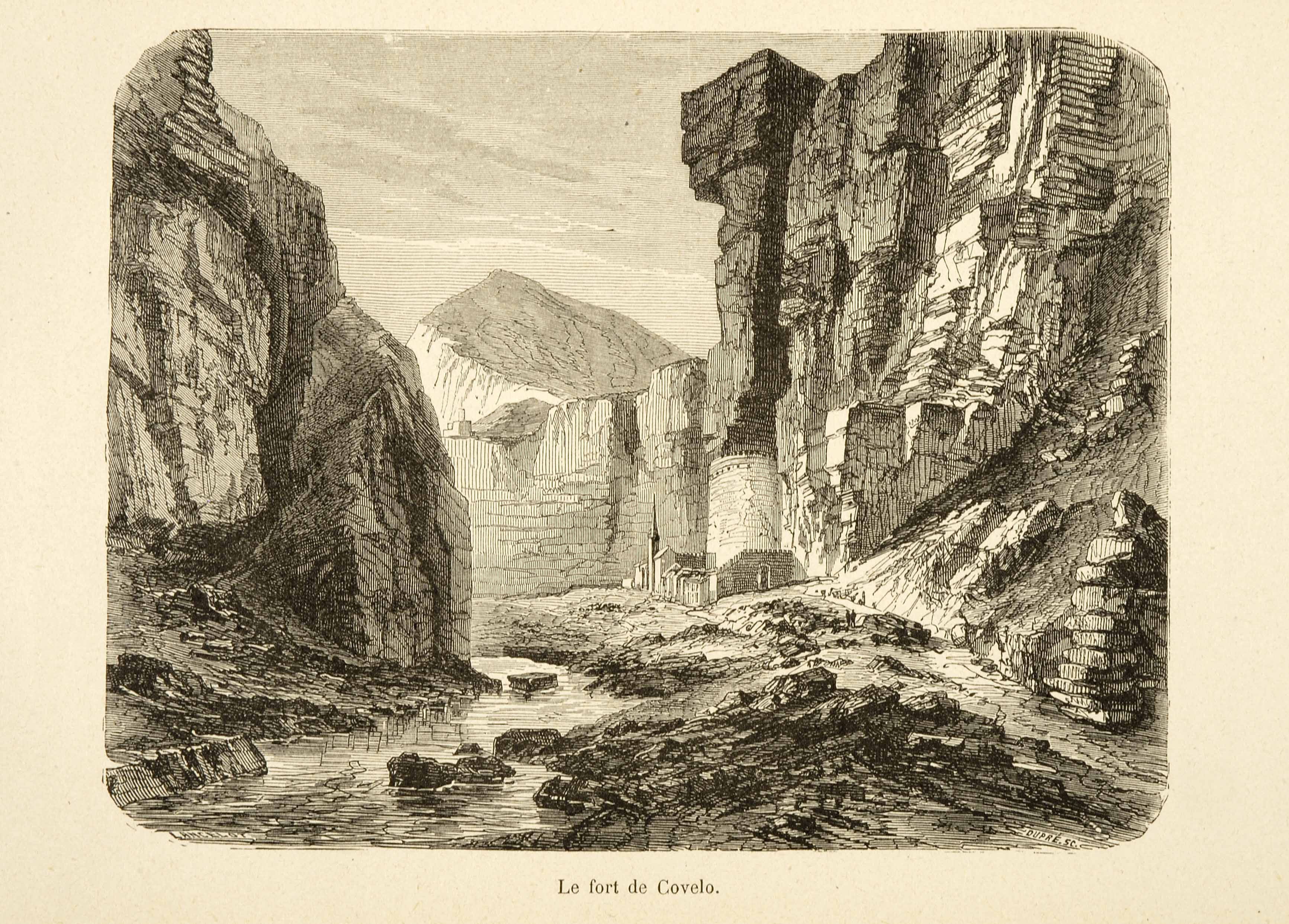 Calcografia; 119x153 mm, su foglio 170x260 mm. Disegno sottoscritto Lancelot, incisione sottoscritta Duprè, pubblicata in Jules Gourdault, A travers le Tyrol, Tours, Mame, 1884