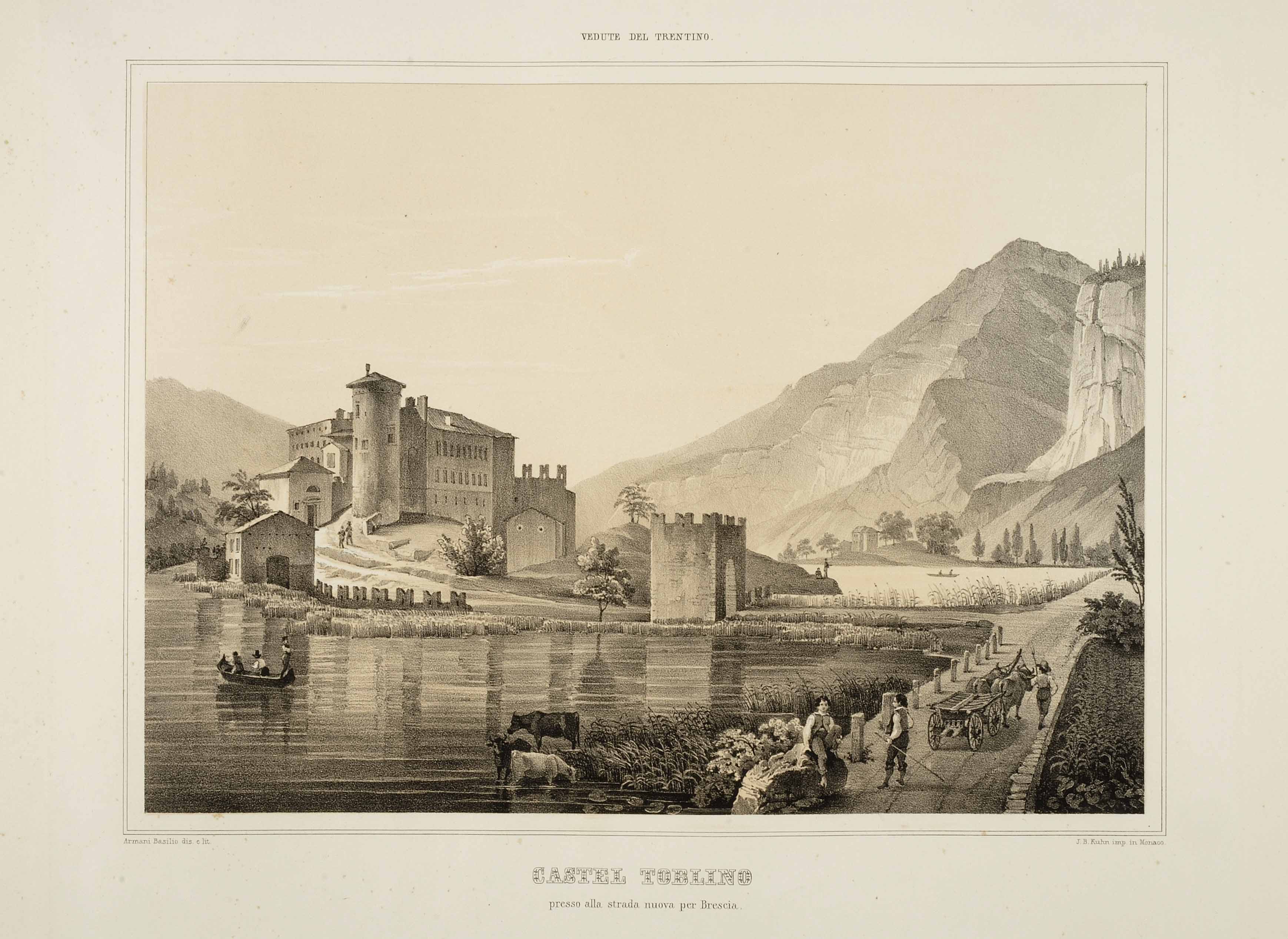 Litografia; 2303x309 mm, su foglio 386x572 mm. Disegno e litografia di Basilio Armani, edita a cura dell'Istituto Sociale di Trento e stampata a Monaco da J. B. Kuhn, data di pubblicazione da Basilio Armani, 1817-1899, Panorami dal Garda al Tirolo, Riva del Garda, Comune di Riva del Garda, Museo Civico, 1999, schede 54-67