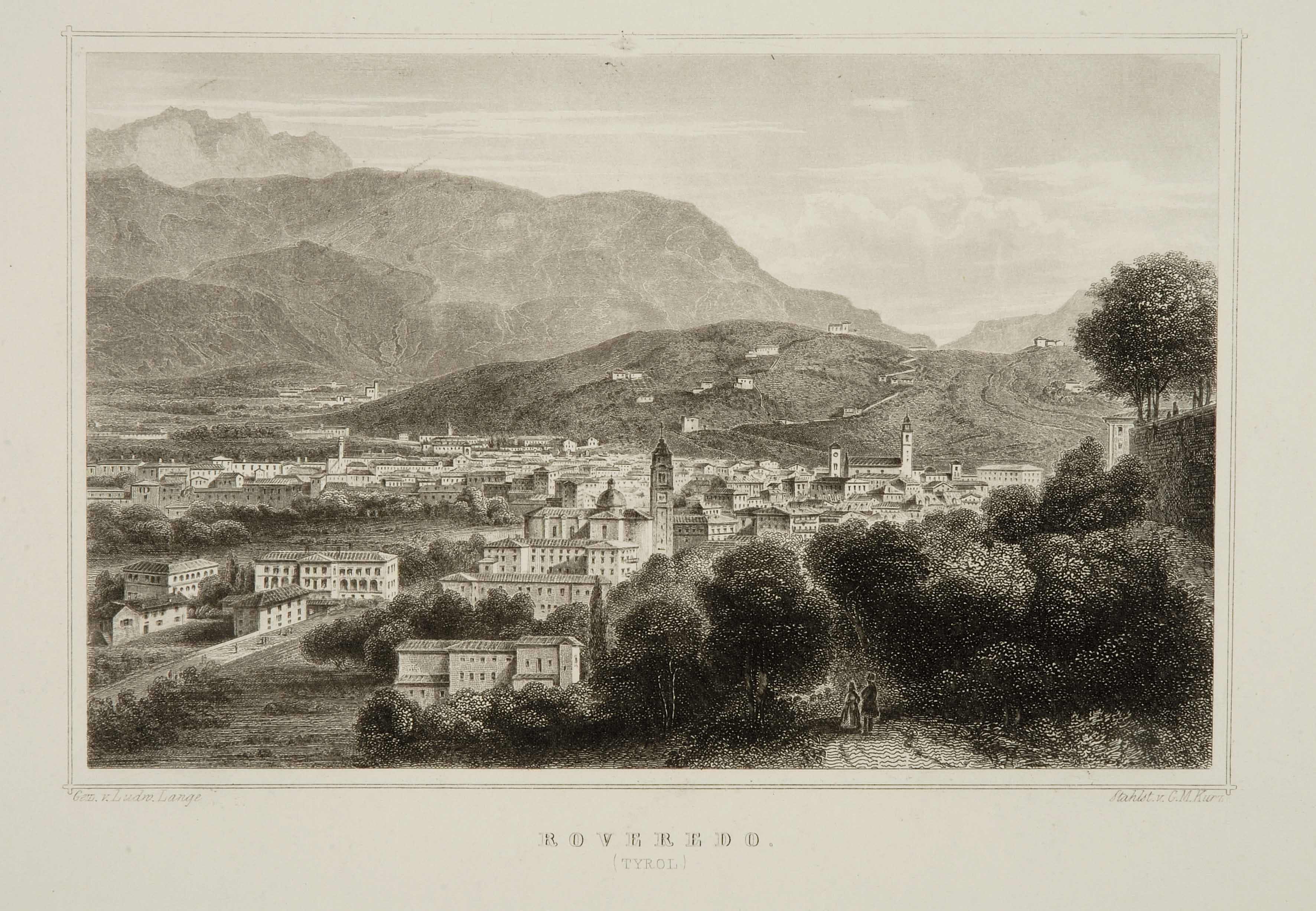 Calcografia; 105x168 mm, su foglio 224x315 mm. Disegno di Ludwig Lange, incisione di Michael Georg Kurz, note tipografiche da Rovereto nell'Ottocento, Rovereto, Rotary Club, 1971, p. 106