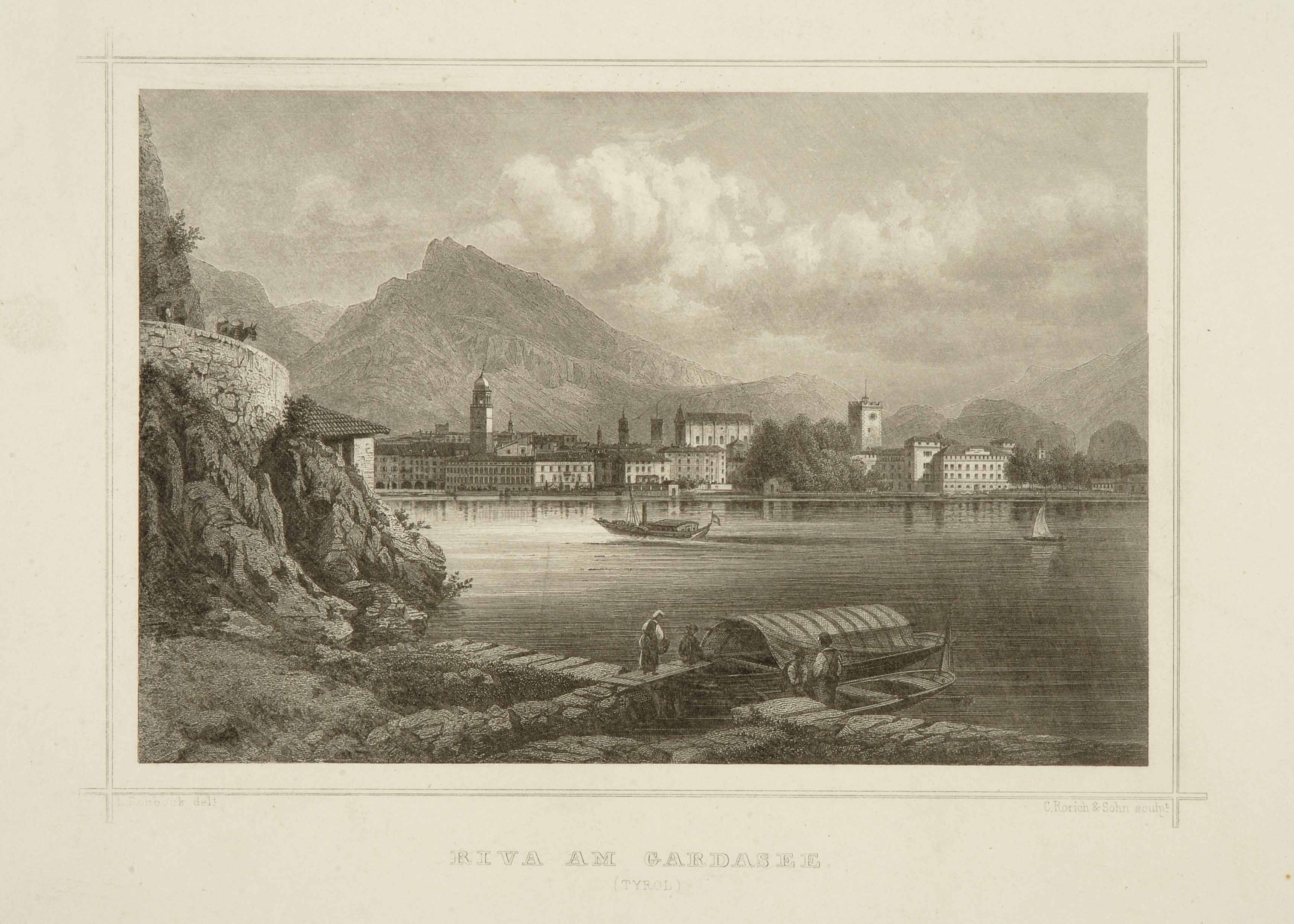 Calcografia; 108x163 mm. Disegno di Ludwig Rohbock, incisione di C. Rorich, pubblicata probabilmente attorno al 1850 (cfr. Ugo Spini, Tebaldo Sinistri, Il Garda nelle sue stampe, Brescia, Grafo, 2000, p. 135)