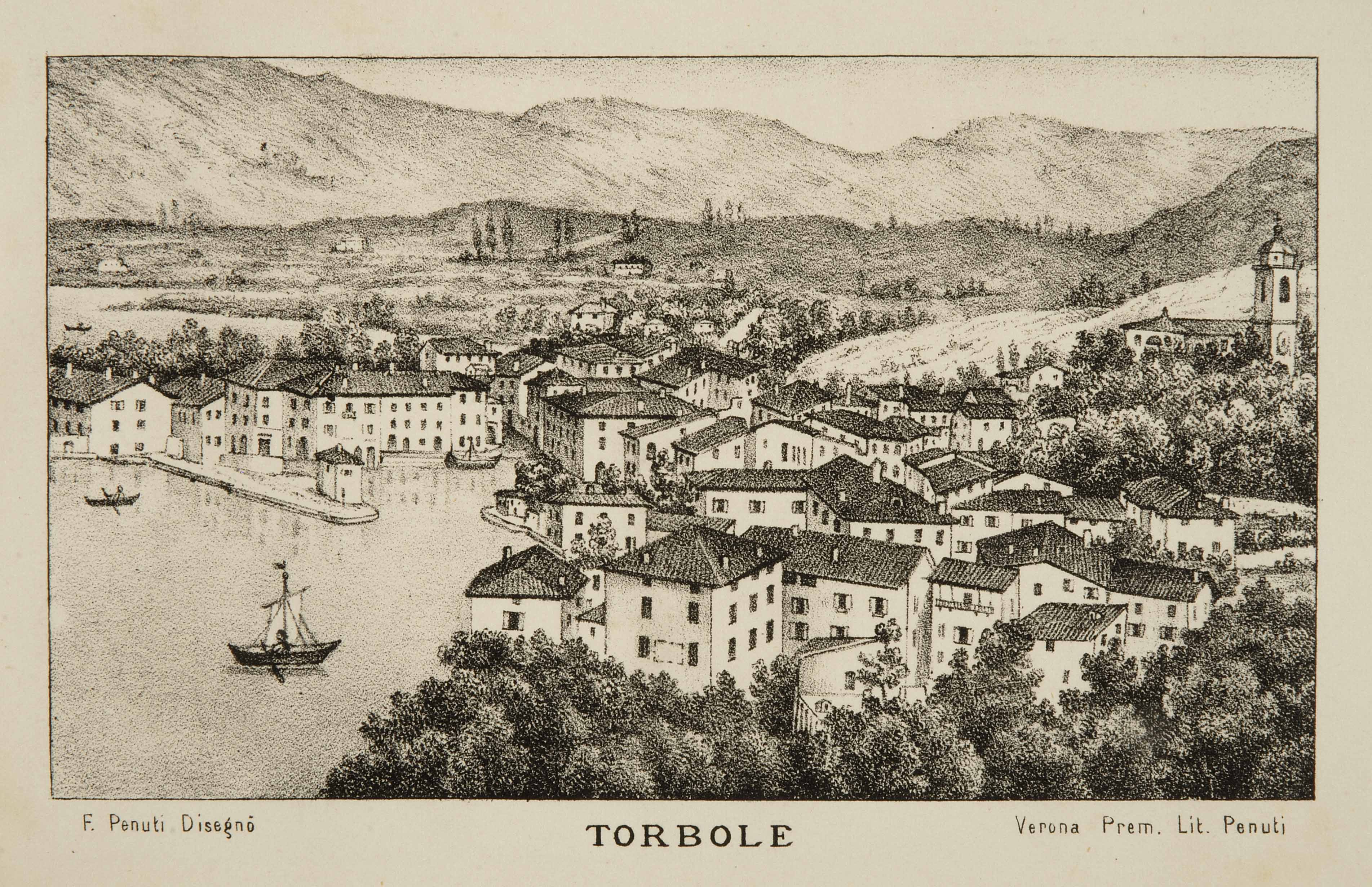 Litografia; 92x157 mm, su foglio 139x206 mm. Disegno di Fioravante Penuti, pubblicata in Giovanni Battista Simeoni, Guida generale del Lago di Garda, Verona, Civelli 1878