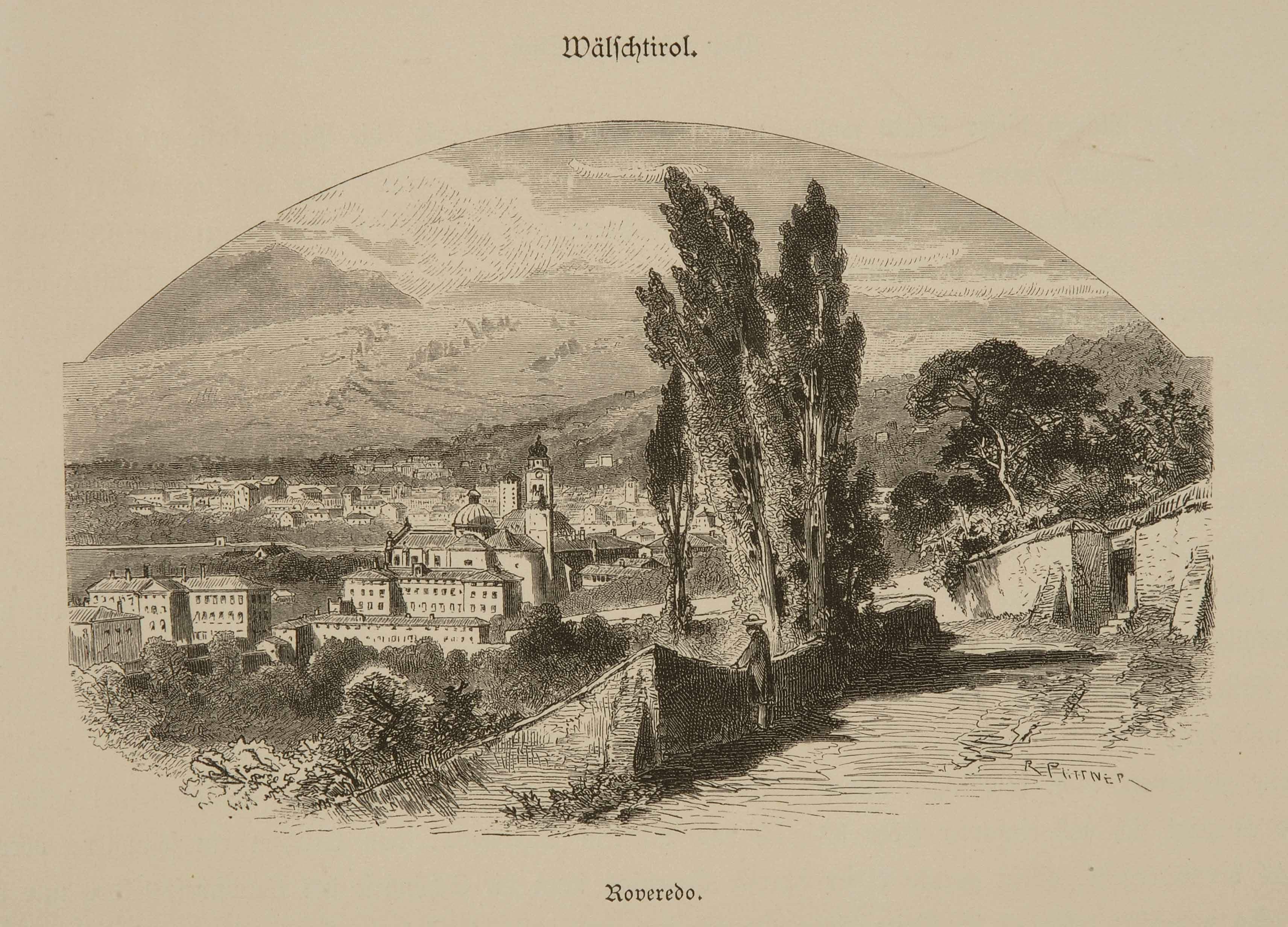 Calcografia; 91x146 mm. Pubblicata in Ludwig von Hörmann, Wanderungen durch Tirol und Vorarlberg, Stuttgart, Kröner, [1877]