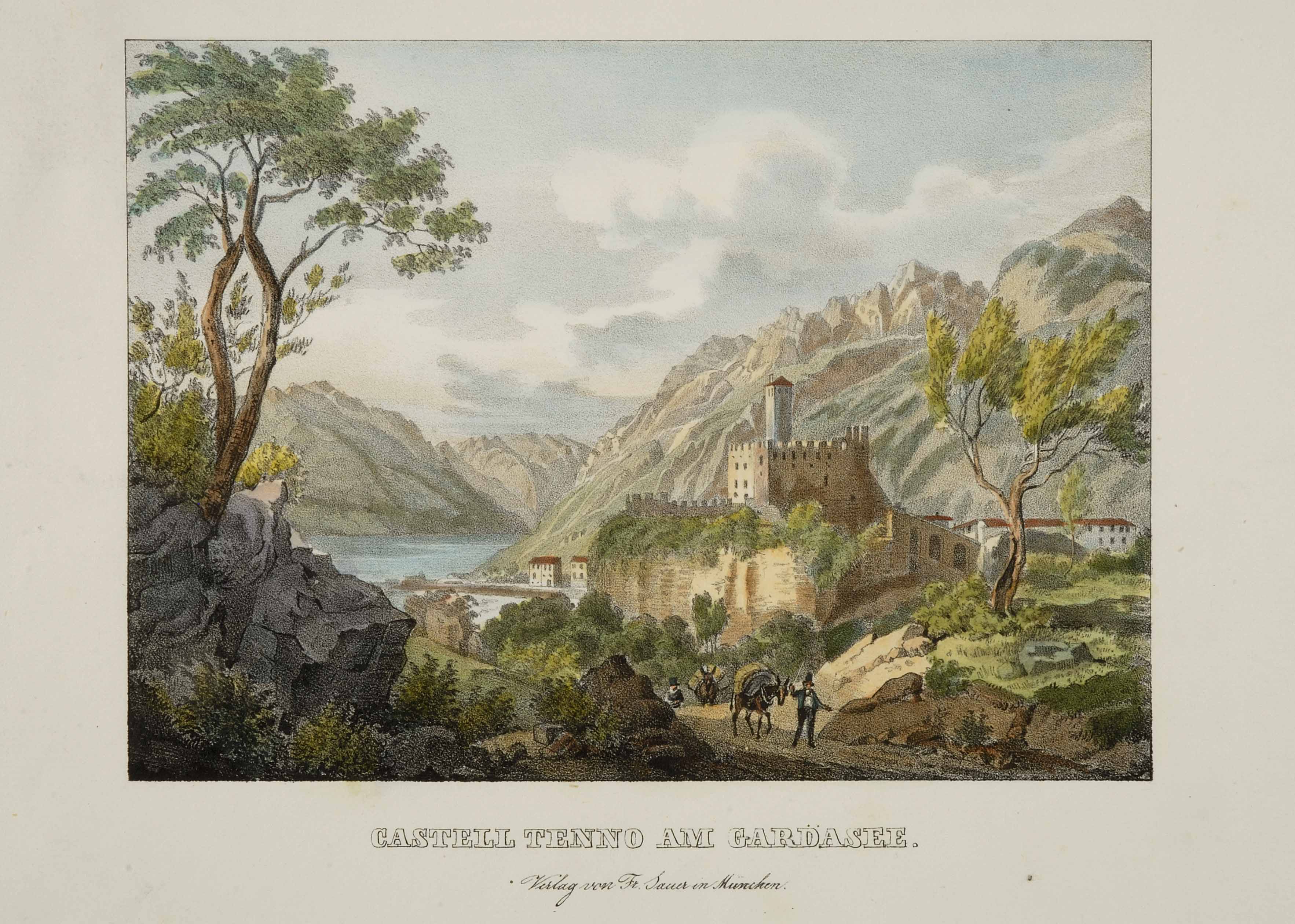 Litografia; 129x179 mm, su foglio 235x272 mm. Pubblicata probabilmente attorno al 1845 (cfr. Ugo Spini, Tebaldo Sinistri, Il Garda nelle sue stampe, Brescia, Grafo, 2000, pp. 158-159)