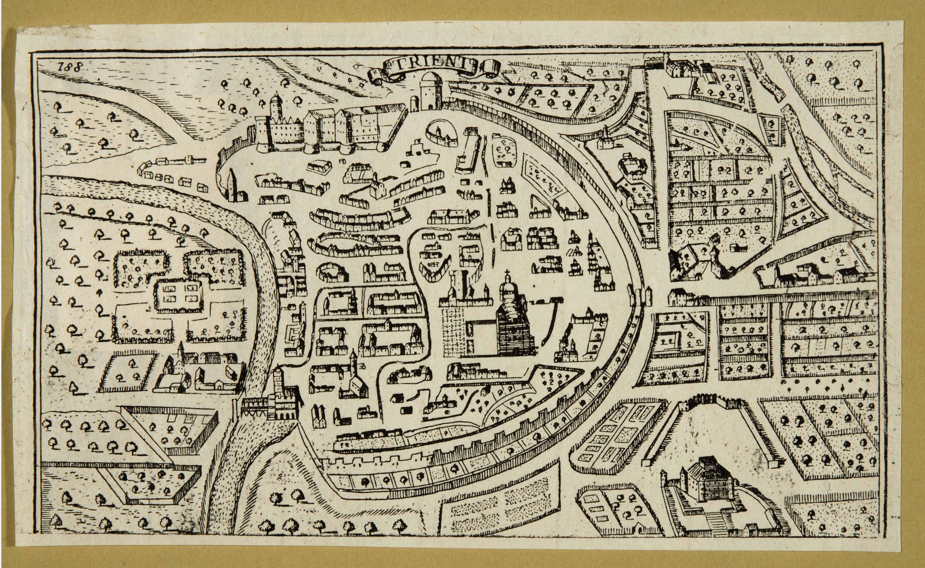 Calcografia; 80x136 mm. Pubblicata in Johann Christoph Beer, Beschreibung der gefürsteten und sehr mächtigen Graffschafft Tyrol, Augsburg, Lorenz Kroniger ed eredi di Gottlieb Göbel, 1703