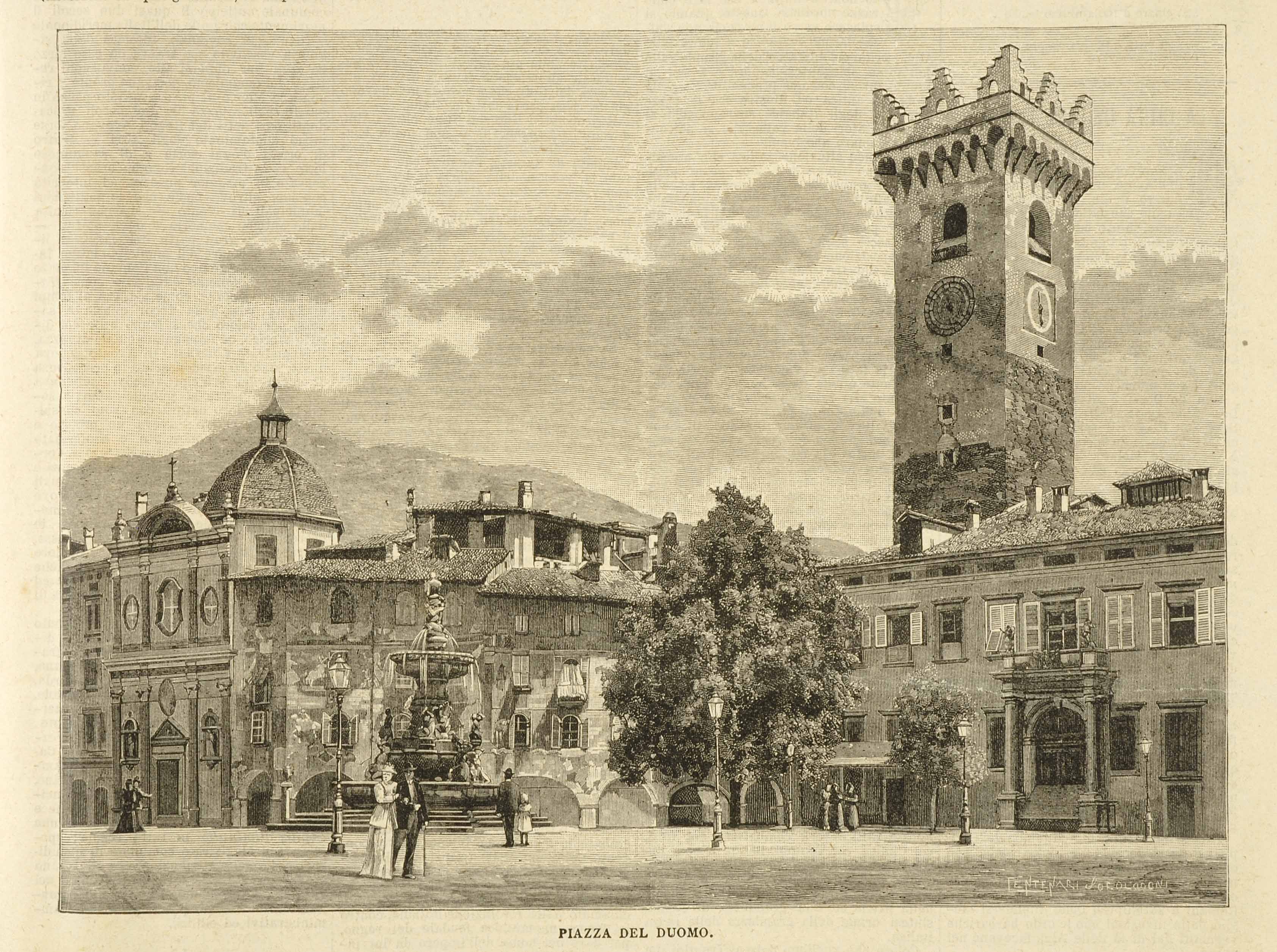 Xilografia; 187x247 mm. Xilografia di Ambrogio Centenari, pubblicata in Gustavo Chiesi, Le cento città d'Italia. ... Trento, Milano, Sonzogno, 1893