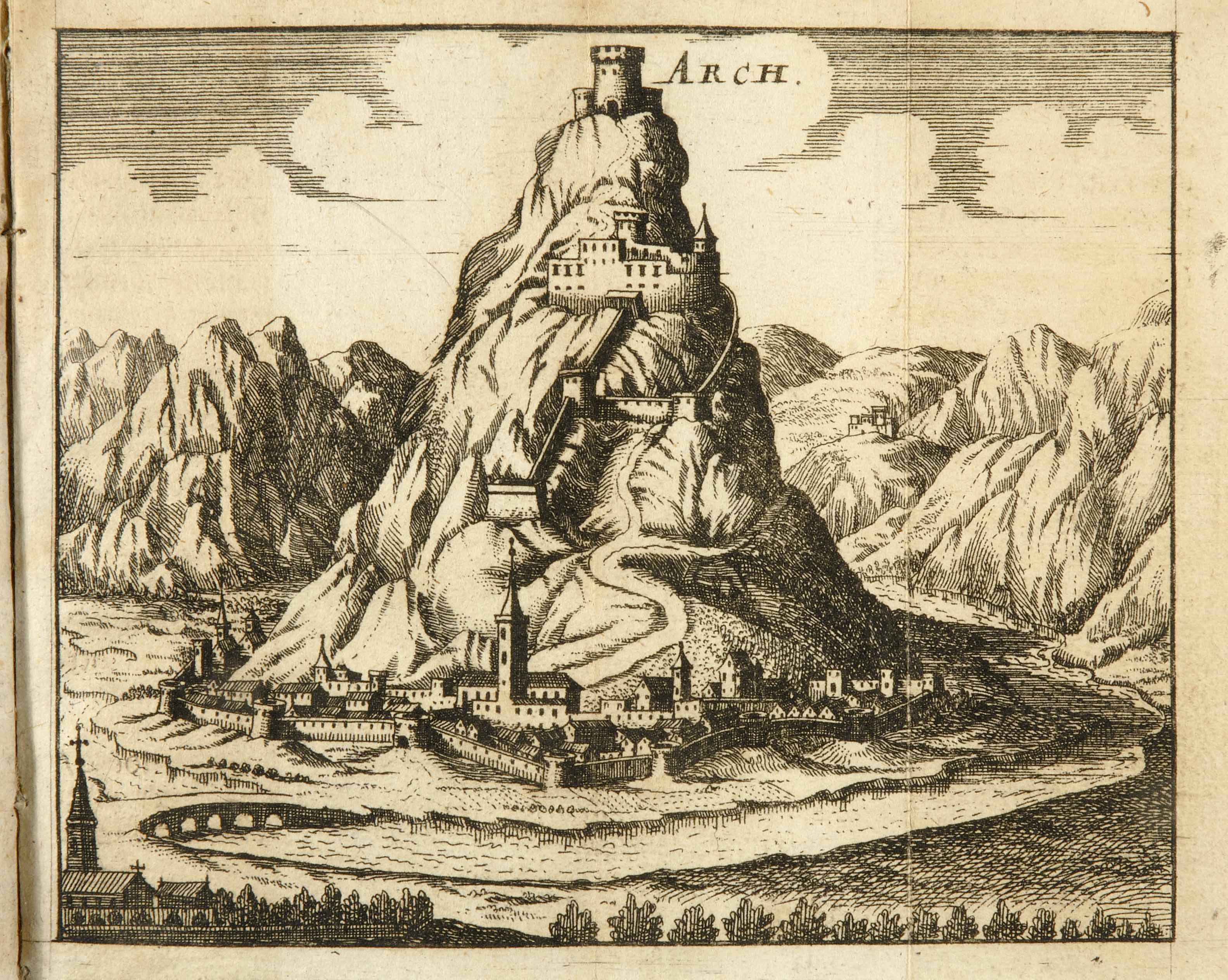 Calcografia, 109x133 mm. Pubblicata in Franz Nigrinus, Die von Natur wolverschanzte und fast unüberwindliche Gefürstete Grafschafft Tirol ..., Frankfurt am Main e Leipzig, Johann Leonhard Buggel, 1703