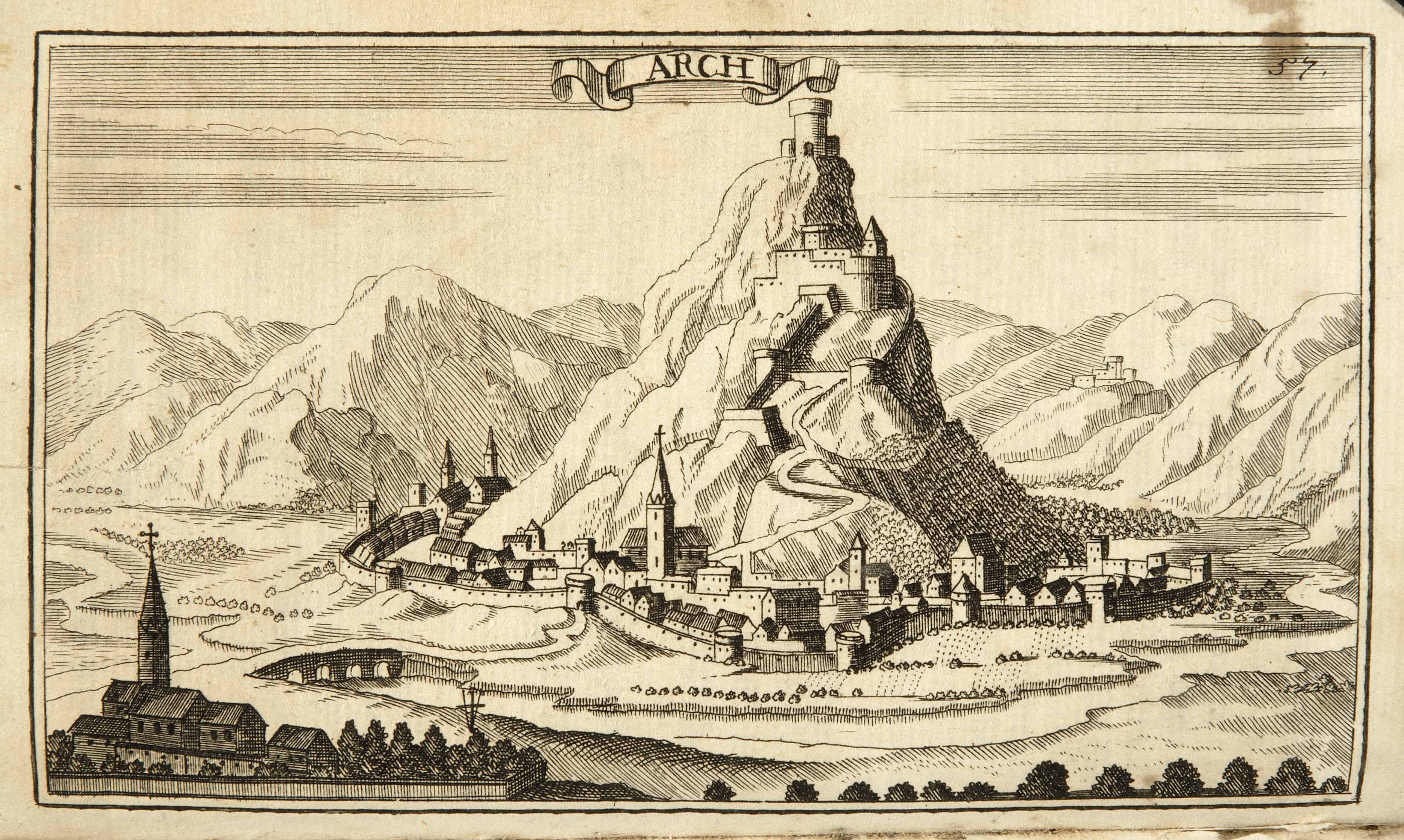 Calcografia; 80x136 mm. Pubblicata in Johann Christoph Beer, Beschreibung der gefürsteten und sehr mächtigen Graffschafft Tyrol, Augsburg, Lorenz Kroniger ed eredi di Gottlieb Göbel, 1703