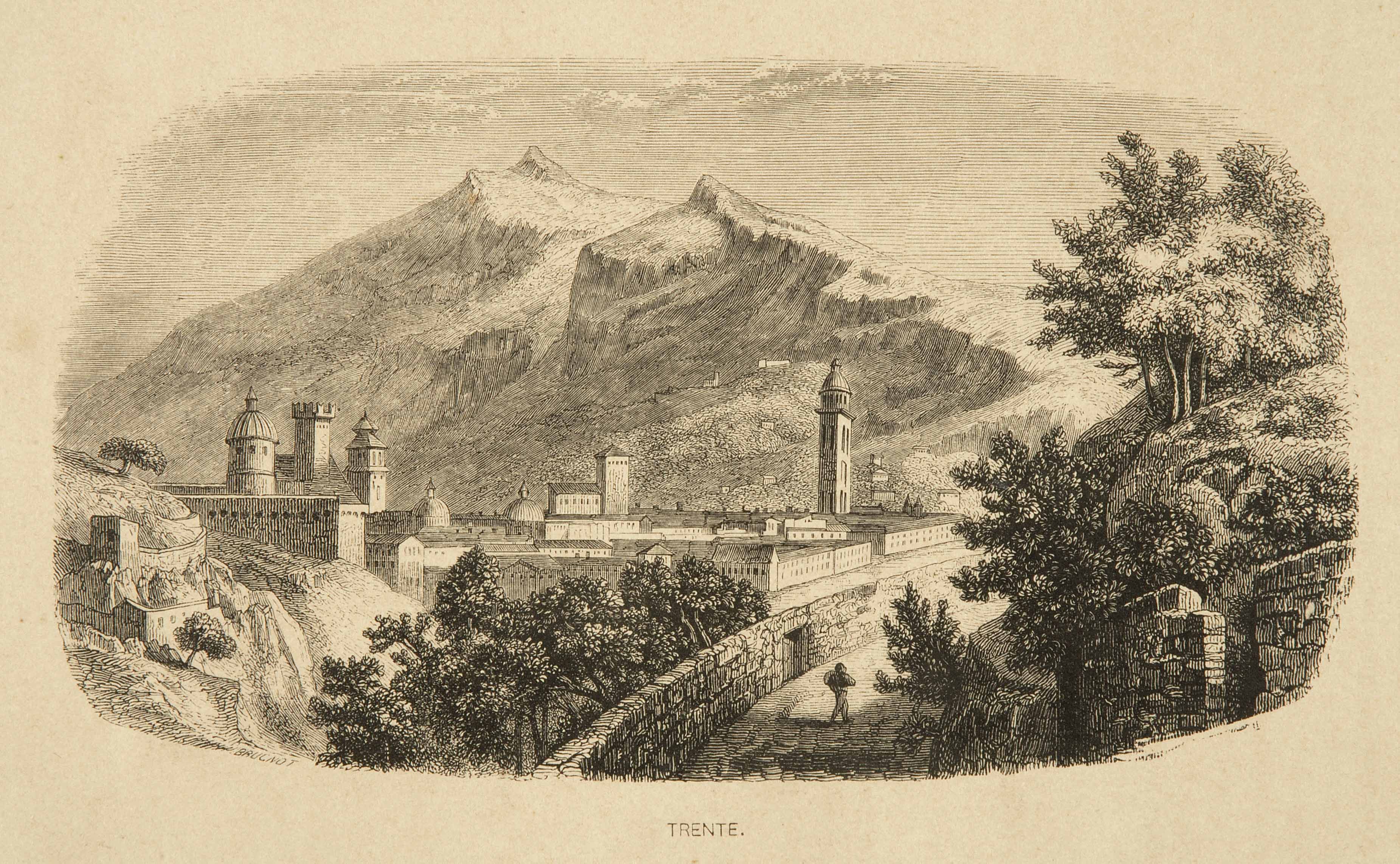 Calcografia; 89x163 mm, 135x205 mm. Incisione sottoscritta: \",Brugnot\",\",, pubblicata in Rodolphe Töpffer, Premiers voyages en zigzag ou excursions d'un pensionnat en vacances dans les Cantons Suisse et sur le revers Italien des Alpes, Paris, Victor Lecou, 1855 e nelle edizioni successive