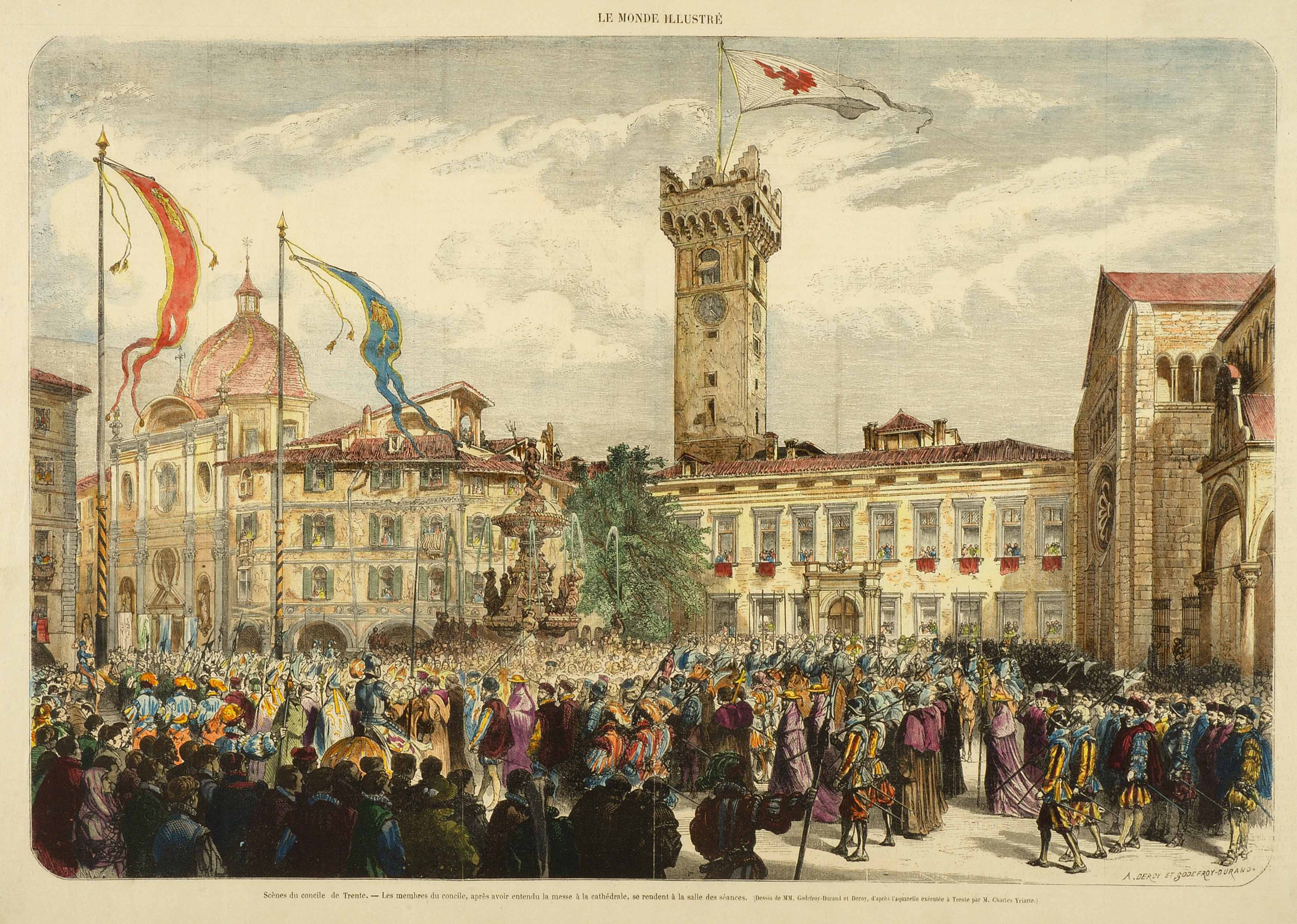 | Scènes du Concile de Trente. Les membres du Concile, après avoir entendu la messe à la cathédrale.... |