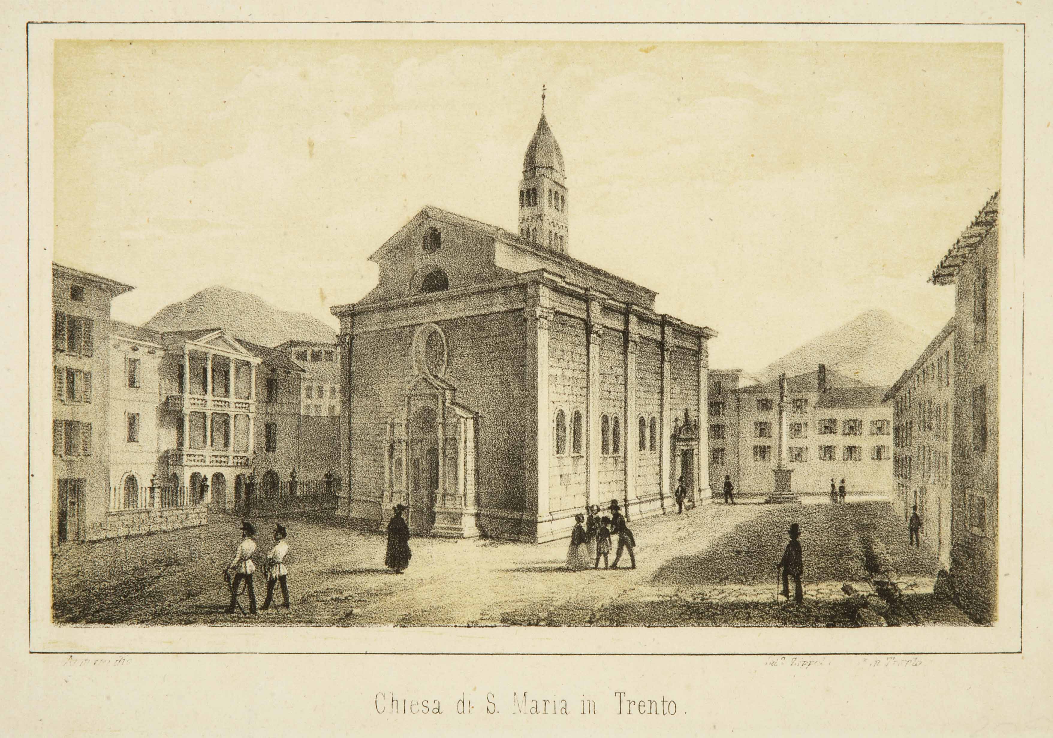 Litografia; 94x152 mm, su foglio 146x207 mm. Pubblicata in Basilio Armani, Album del Trentino per l'anno 1853, Trento, Perini, [1853]