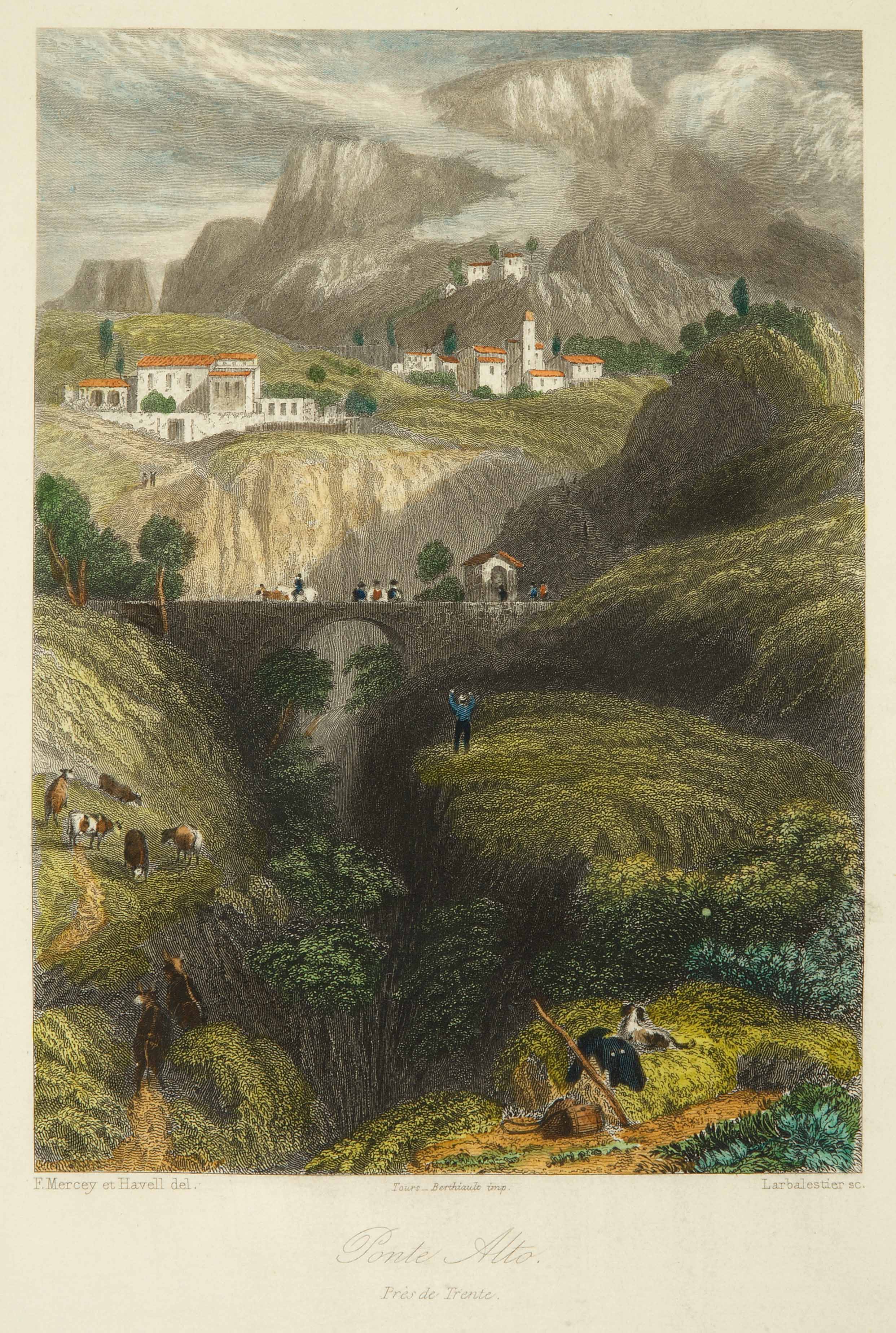 Calcografia; 151x109 mm, 275x177 mm. Disegno di Frédéric Mercey e Robert Havell, incisione di Larbalestier, pubblicata in Frédéric Mercey, Histoire et description des principales villes de l'Europe. Tyrol. Trente, Paris, Desenne, 1835