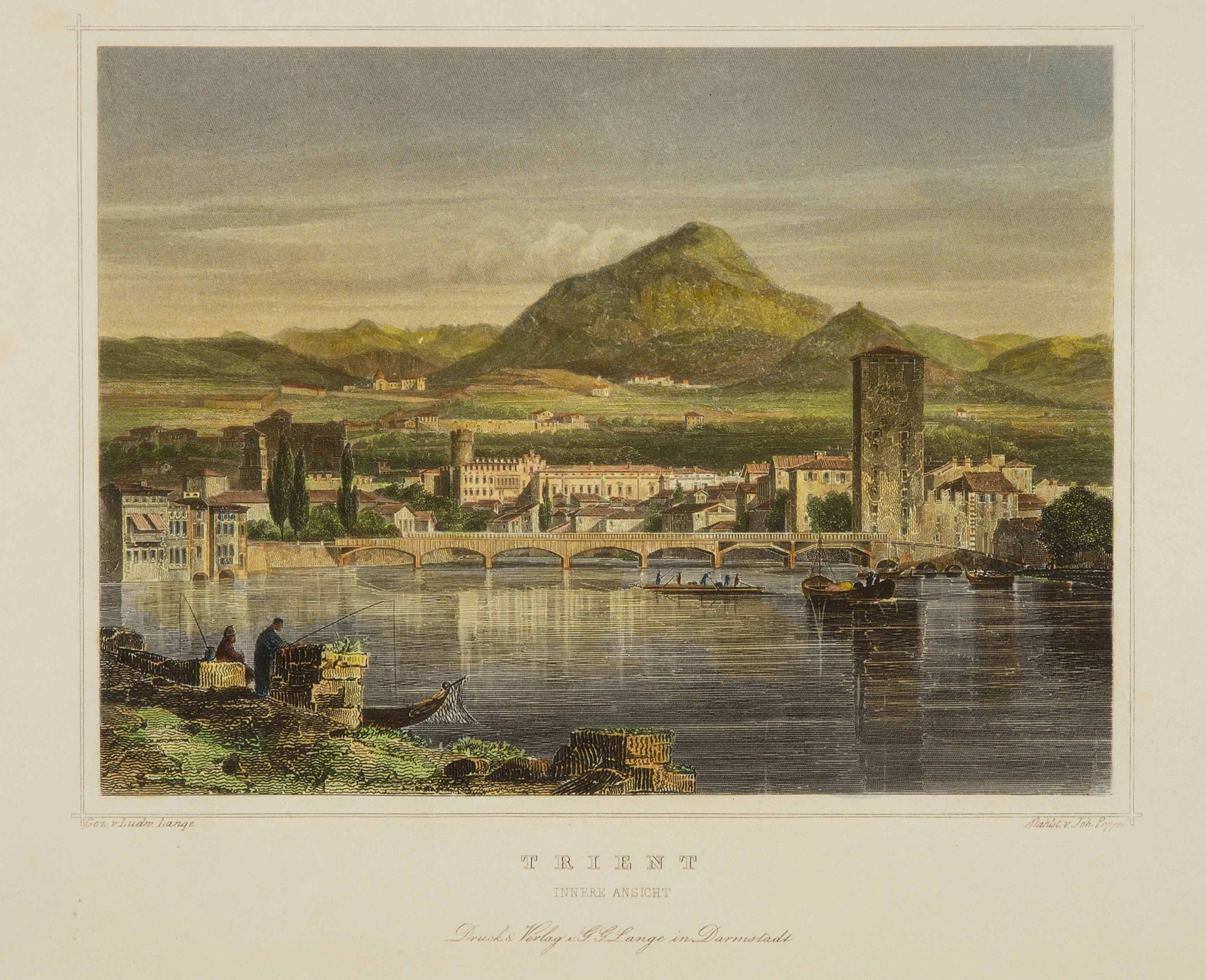 Calcografia; 183x249 mm. Disegno di Ludwig Lange, incisione di Johann Poppel, data di pubblicazione da Aldo Chemelli, Trento nelle stampe d'arte, Trento, Provincia autonoma di Trento, Ufficio beni librari e archivistici, 1990, p. 212