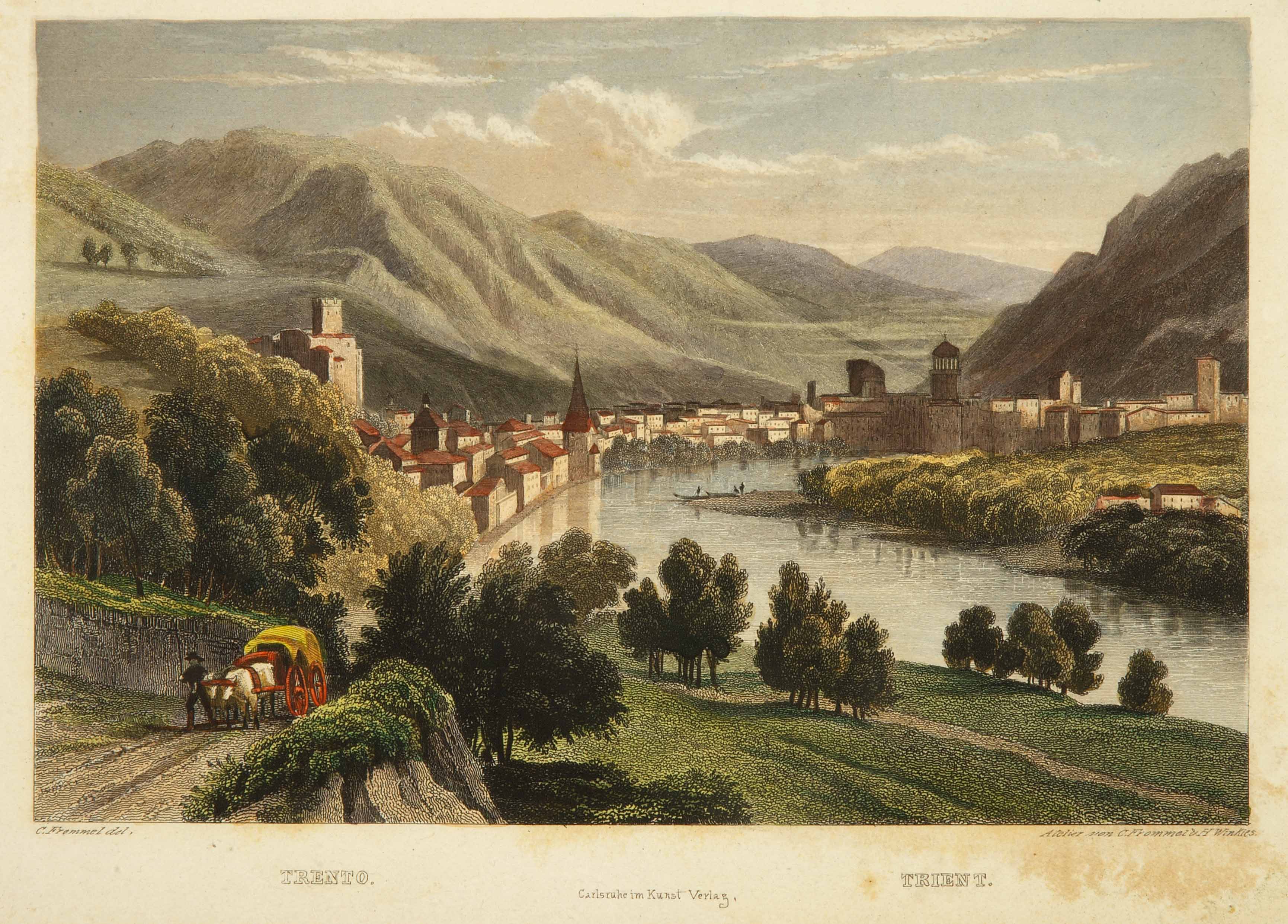 Calcografia; 110x165 mm. Disegno di Carl Ludwig Frommel, incisione di Carl Ludwig Frommel e Henri Winkles, data di pubblicazione da Aldo Chemelli, Trento nelle stampe d'arte, Trento, Provincia autonoma di Trento, Ufficio beni librari e archivistici, 1990, p. 196