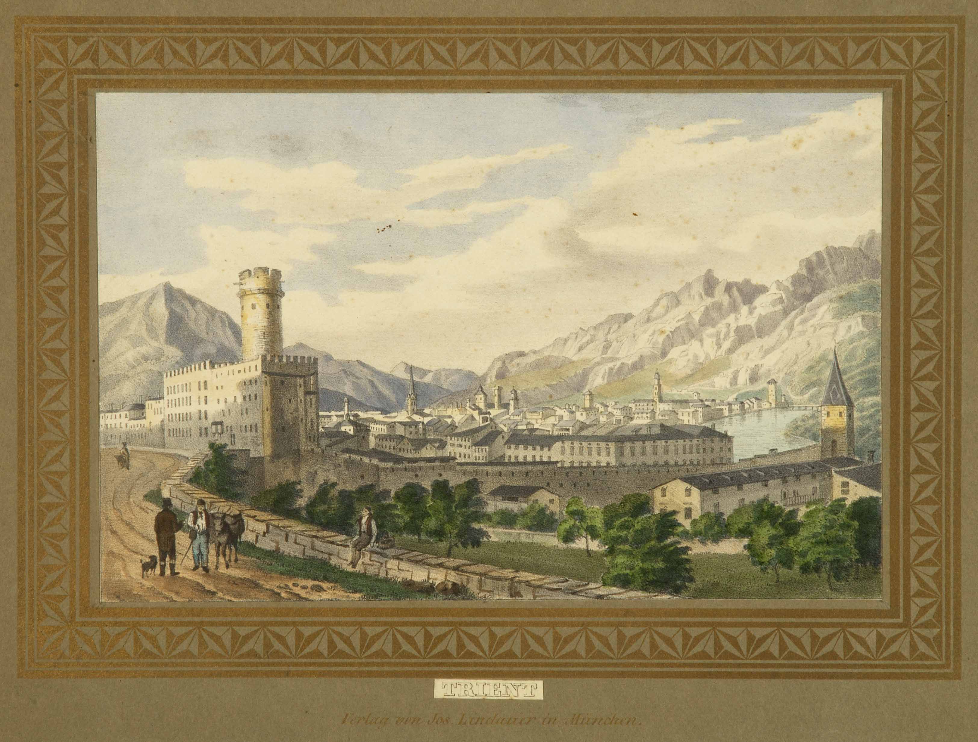 Litografia; 126x190, su foglio 210x256 mm. Attribuita ad August Godermayr e pubblicata tra il 1830 e il 1840. Cfr. Aldo Chemelli, Trento nelle stampe d'arte, Trento, Provincia autonoma di Trento, Ufficio beni librari e archivistici, 1990, p. 209