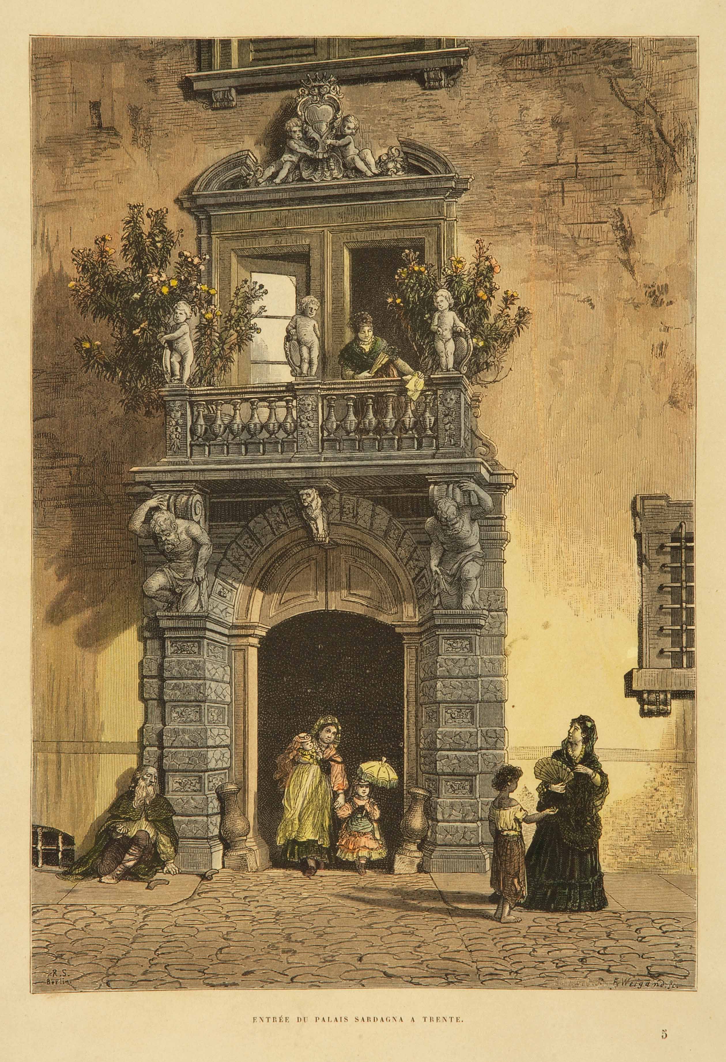 Litografia; 248x173 mm, su foglio 338x241 mm. Disegno di Adolf Closs, incisione di Friedrich Weigand, pubblicata anche in Italien. Eine Wanderung von den Alpen bis zum Aetna, Stuttgart, Engelhorn, 1876
